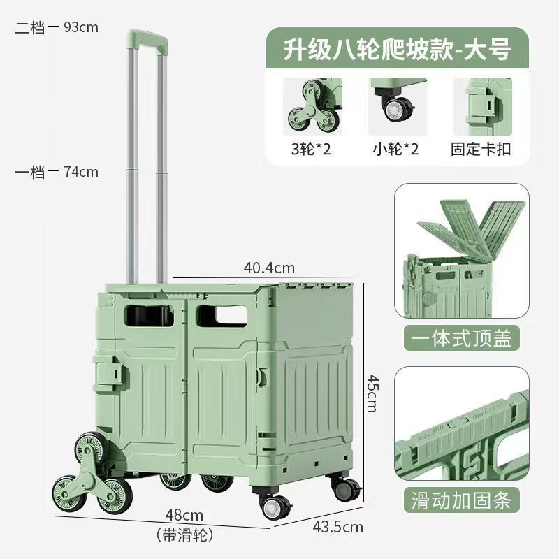 • [업그레이드된 플랫풀 8륜 계단오르기 모델] 민트그린 대형 75L 무설치_커버 일체형