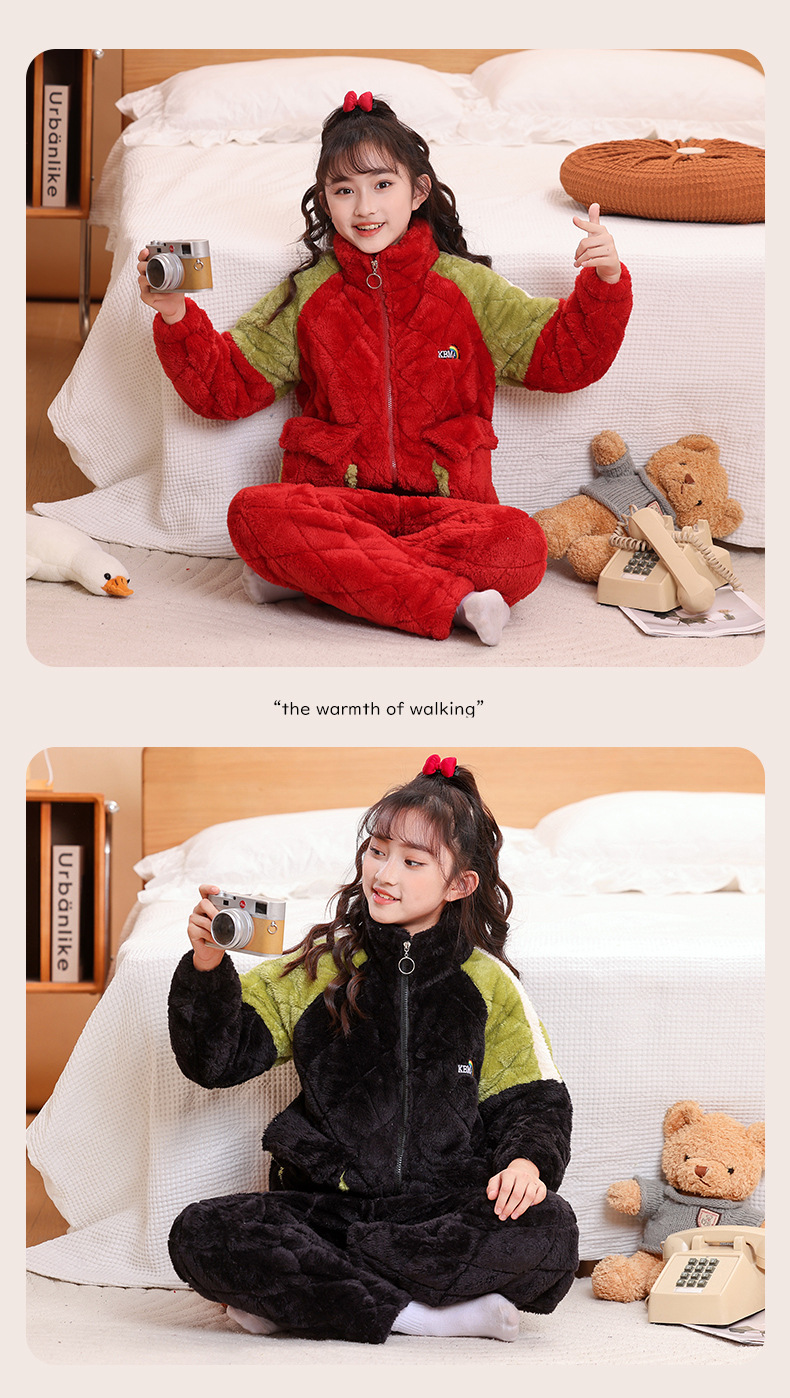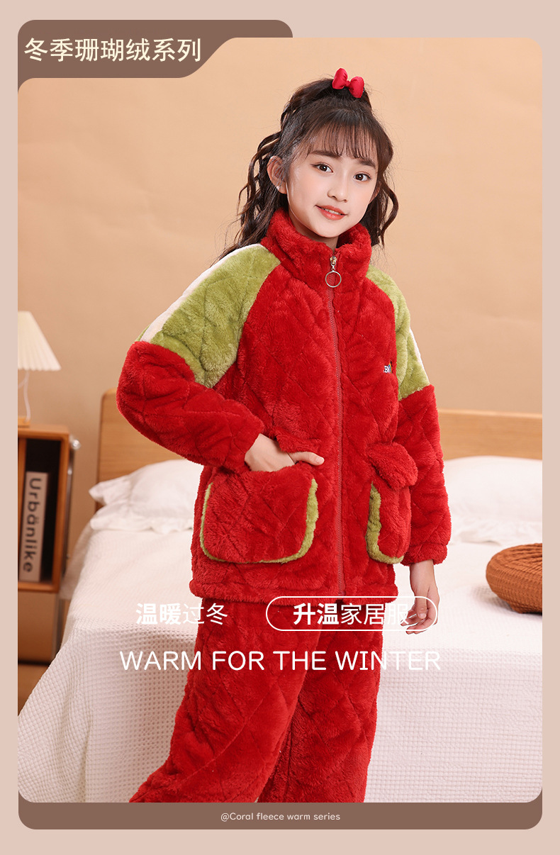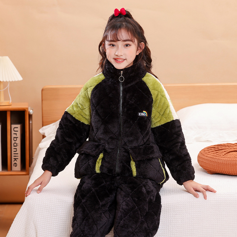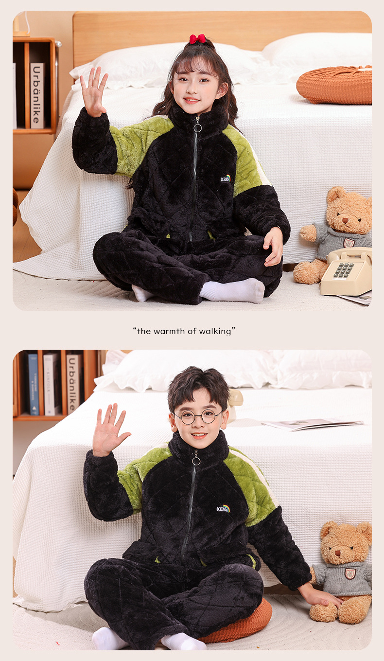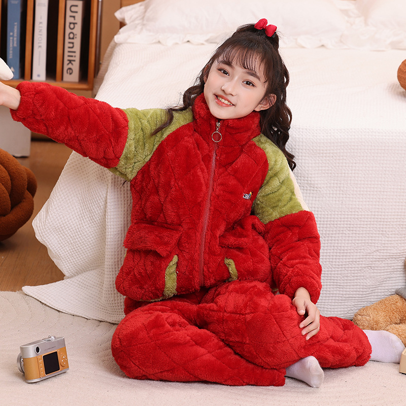 소년을위한 어린이 잠옷 겨울 두꺼운 플란넬 3 층 퀼트 산호 양털 레저 홈 옷 중 및 대형 어린이와 소녀 용
