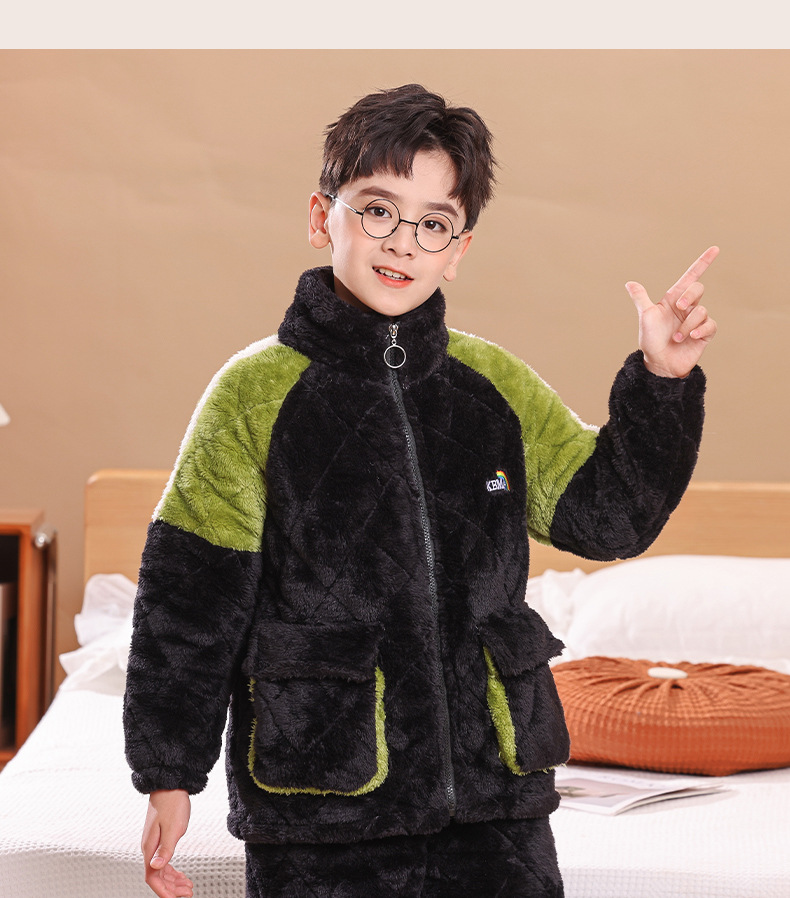 소년을위한 어린이 잠옷 겨울 두꺼운 플란넬 3 층 퀼트 산호 양털 레저 홈 옷 중 및 대형 어린이와 소녀 용스토어 가기