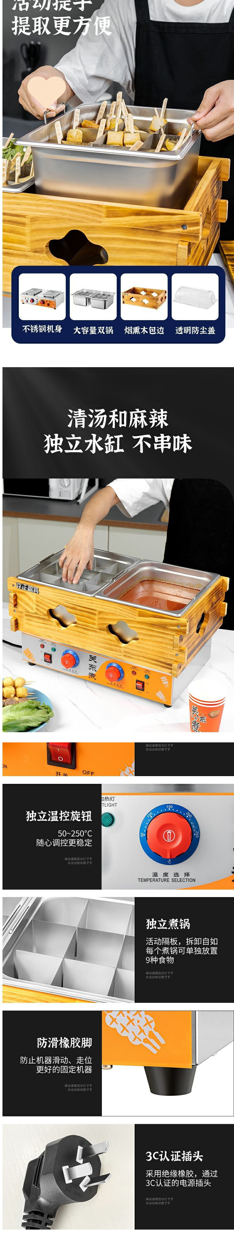 • 경제적인 모델 - 이중 온도 조절 - 이중 9칸 오뎅 + 대형 방진