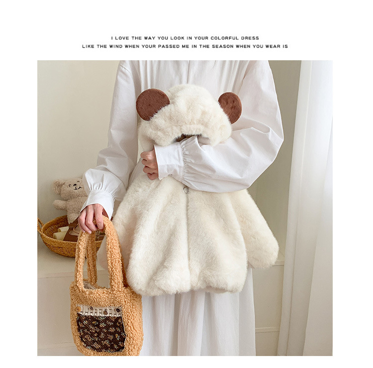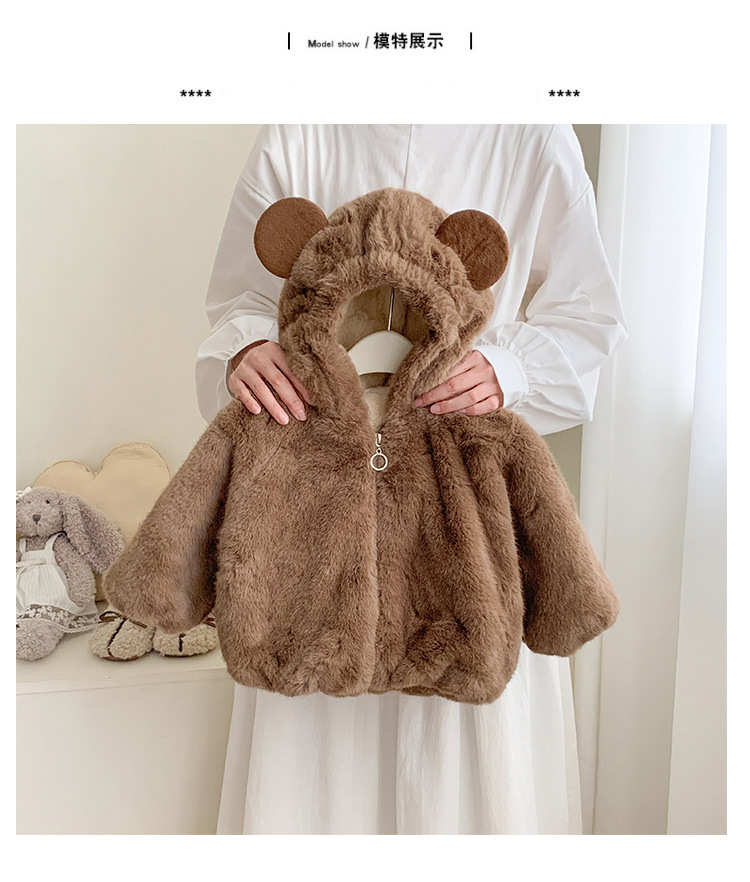 어린이 곰 귀 가짜 모피 스웨터 코트 두꺼운 밍크 플러시 따뜻한 코트 아기 코튼 코트
