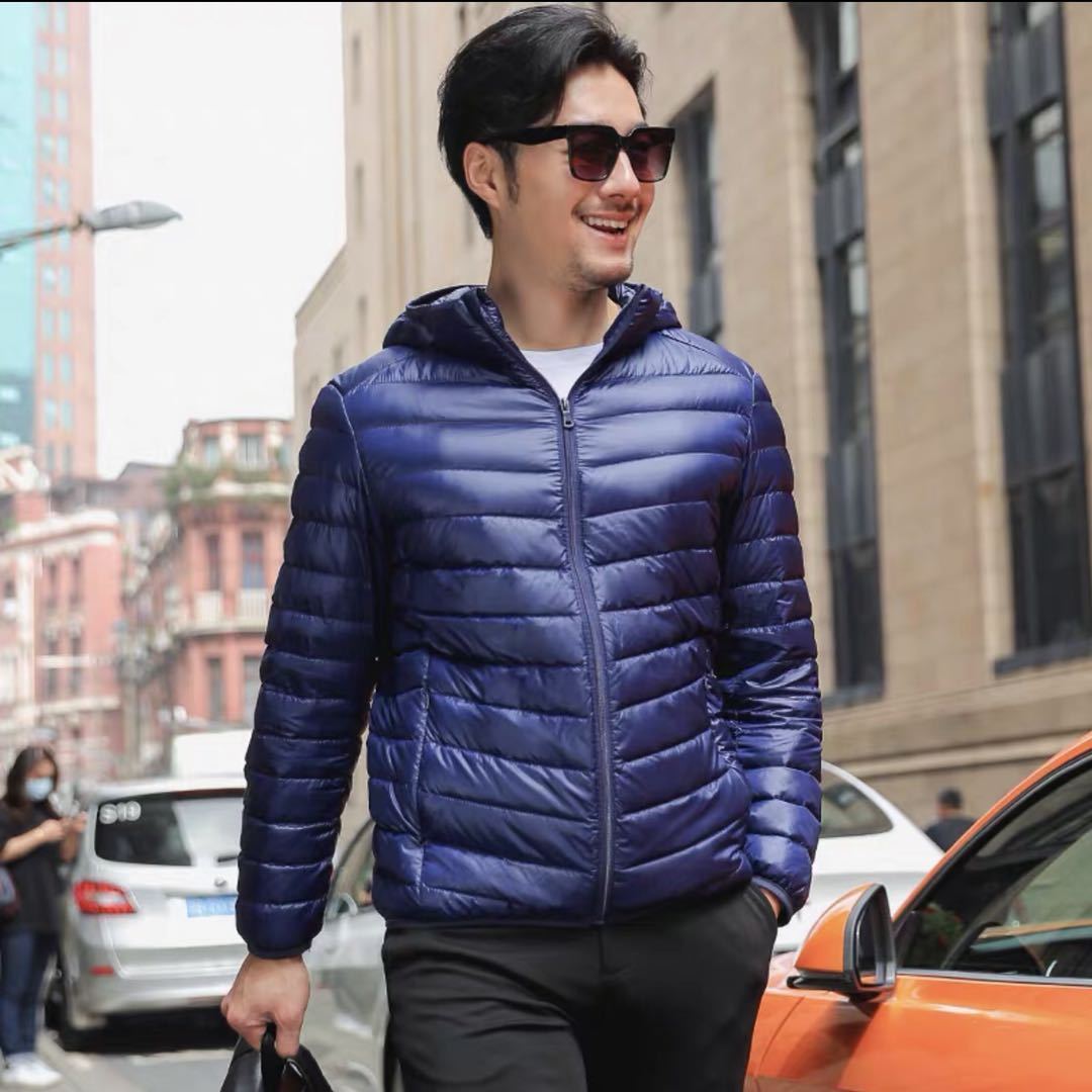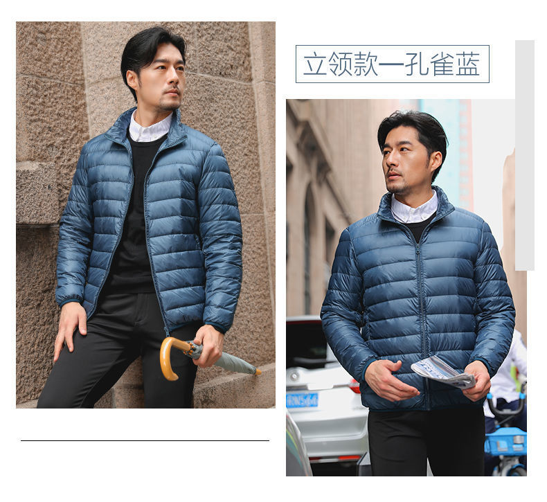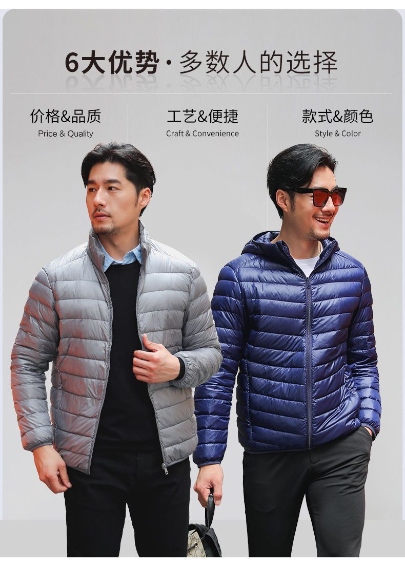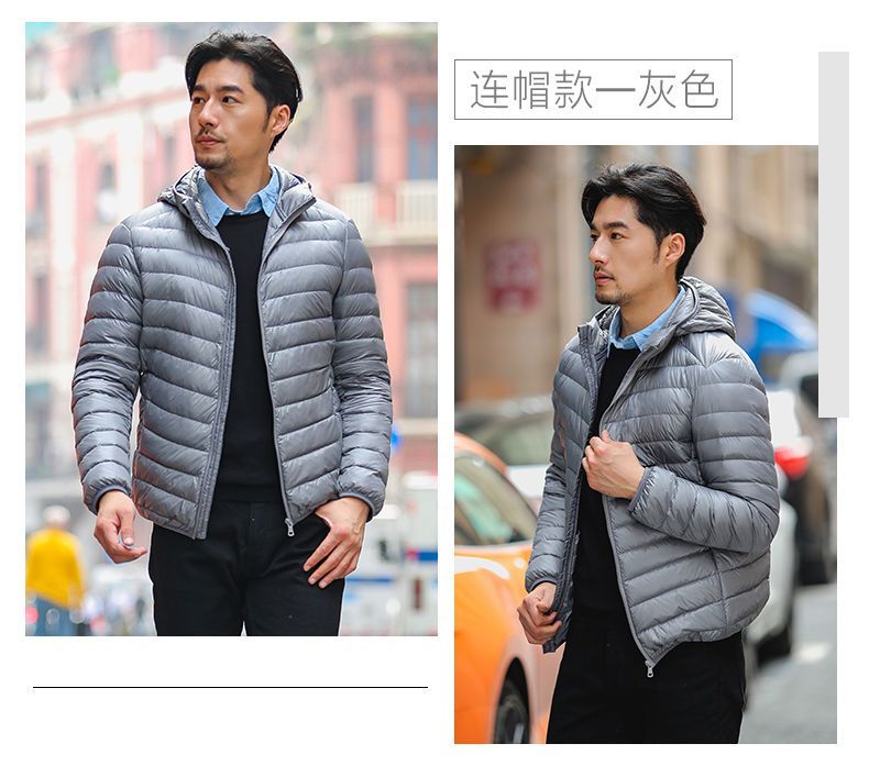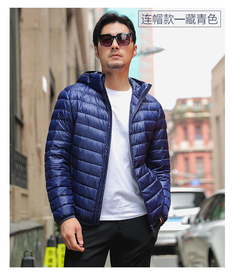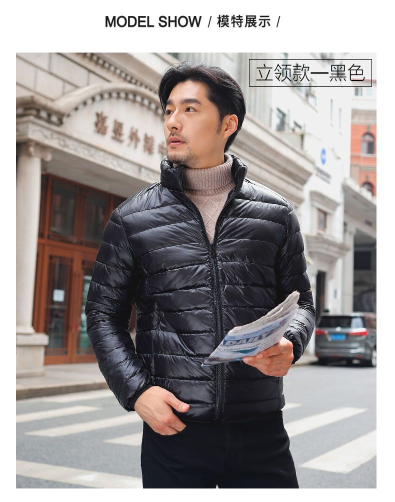 남성용 크로스보더 TikTok 가을 겨울 경량 다운 재킷, 한국 스타일 슬림핏 짧은 대형 두꺼운 화이트 덕 다운 재킷스토어 가기