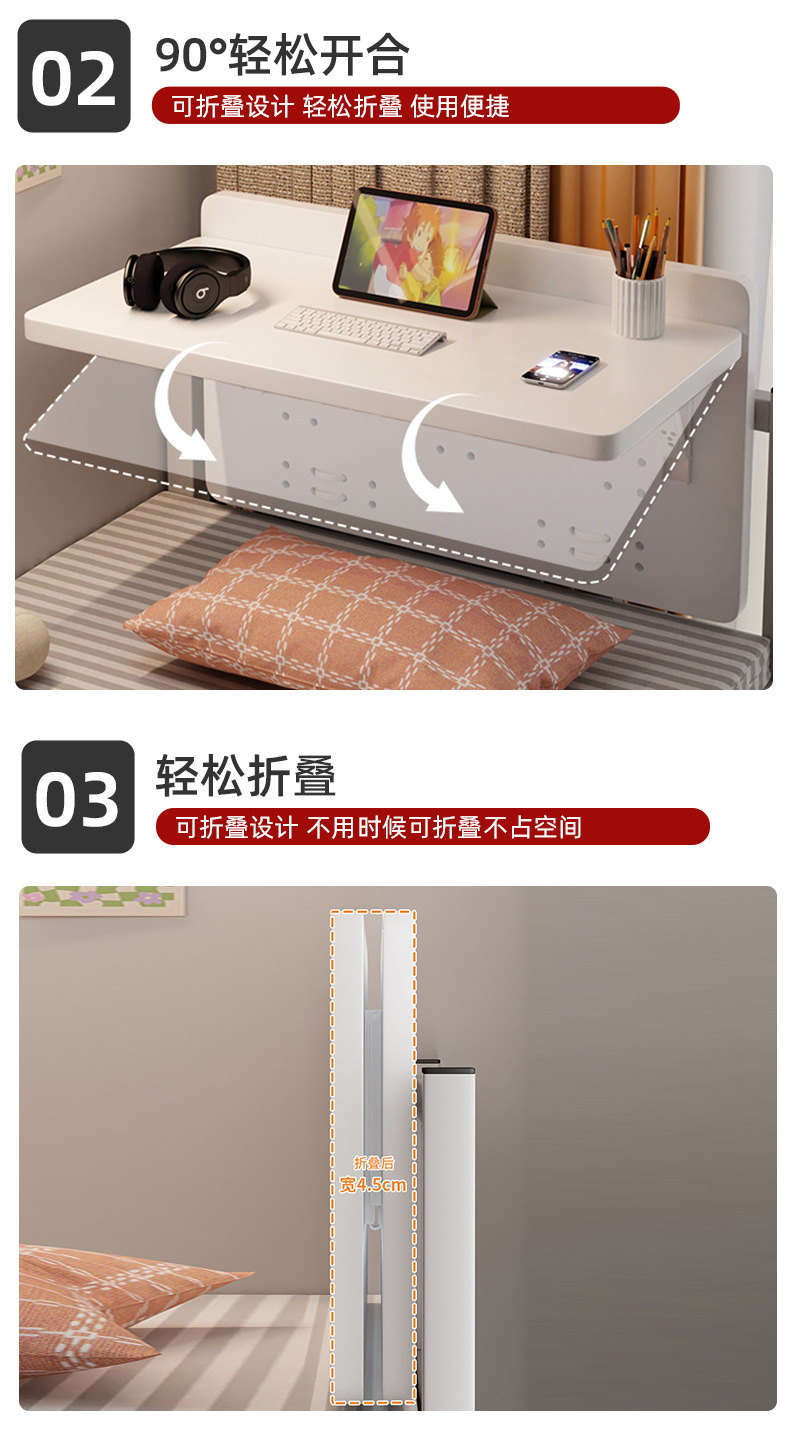 학생 기숙사 교수형 접이식 학습 책상 침실 침대 작은 테이블 게으른 책상 간단한 컴퓨터 책상