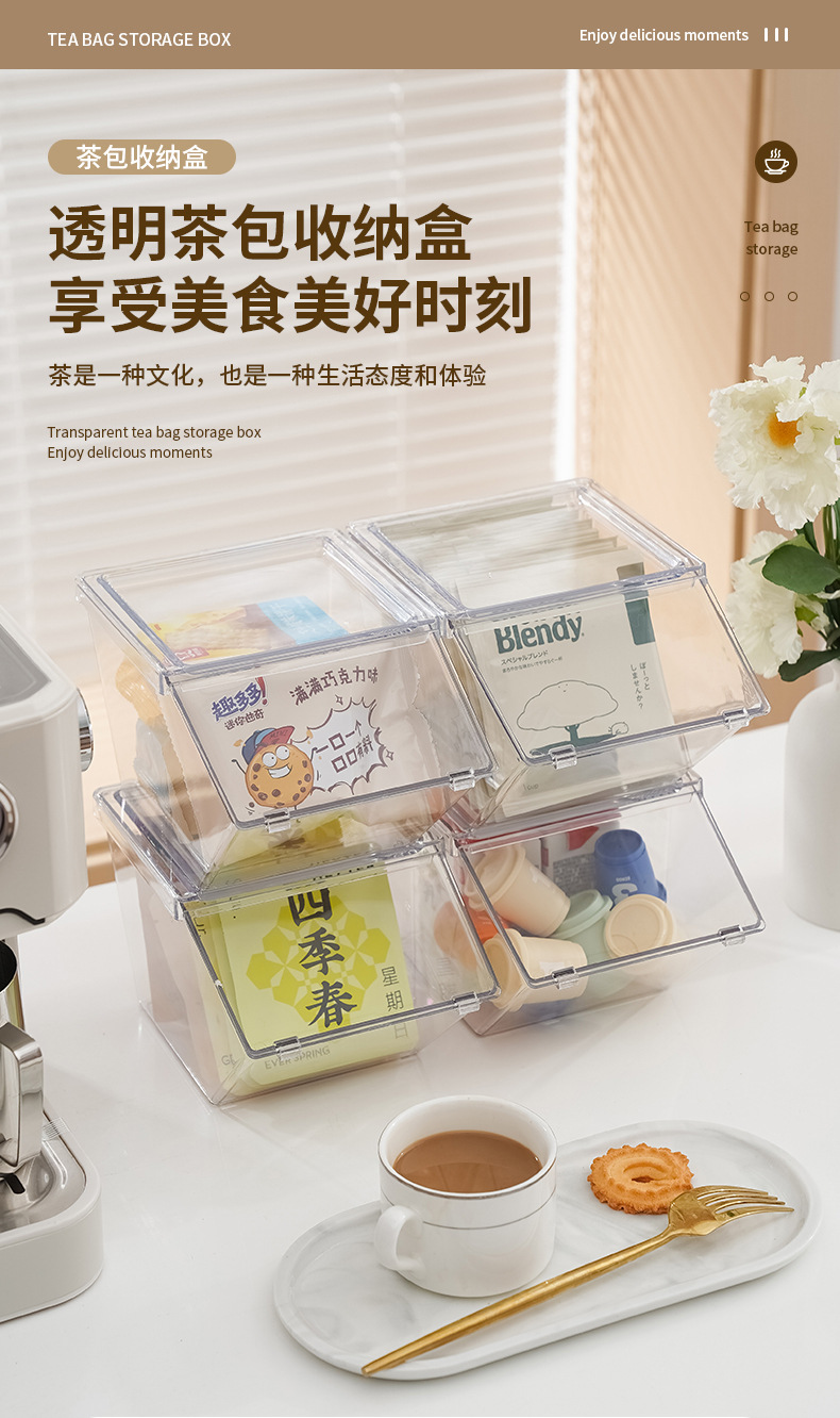 티백 대형 스토리지 박스 캡슐 커피 플립 커버 방진 오피스 티룸 데스크탑 화장품 보관 상자 뚜껑스토어 가기