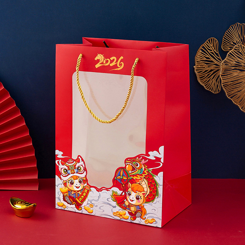 말의 해 투명 창 선물 가방 고급 핸드백 빨간색 기념품 가방 설날 연회 종이 가방