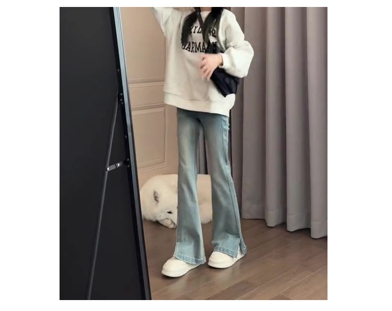 바지 여성의 2024 새로운 봄과 가을 마이크로 라르 청바지 작은 여성의 높은 허리 슬리밍 바지