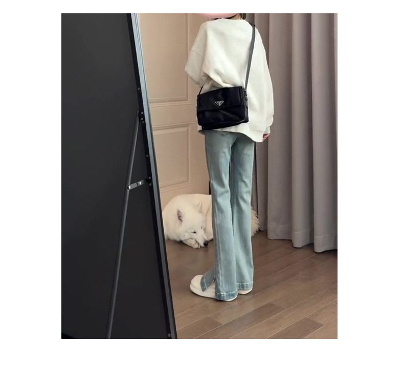 바지 여성의 2024 새로운 봄과 가을 마이크로 라르 청바지 작은 여성의 높은 허리 슬리밍 바지스토어 가기