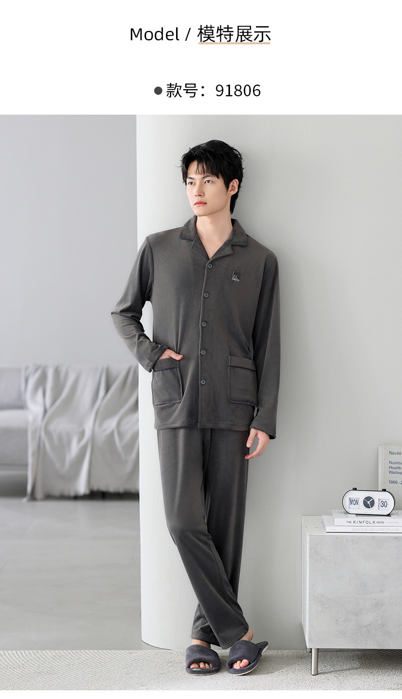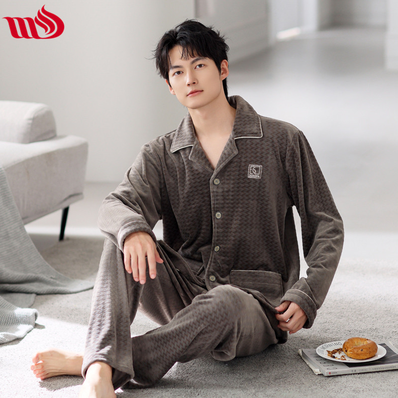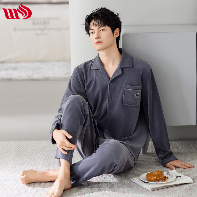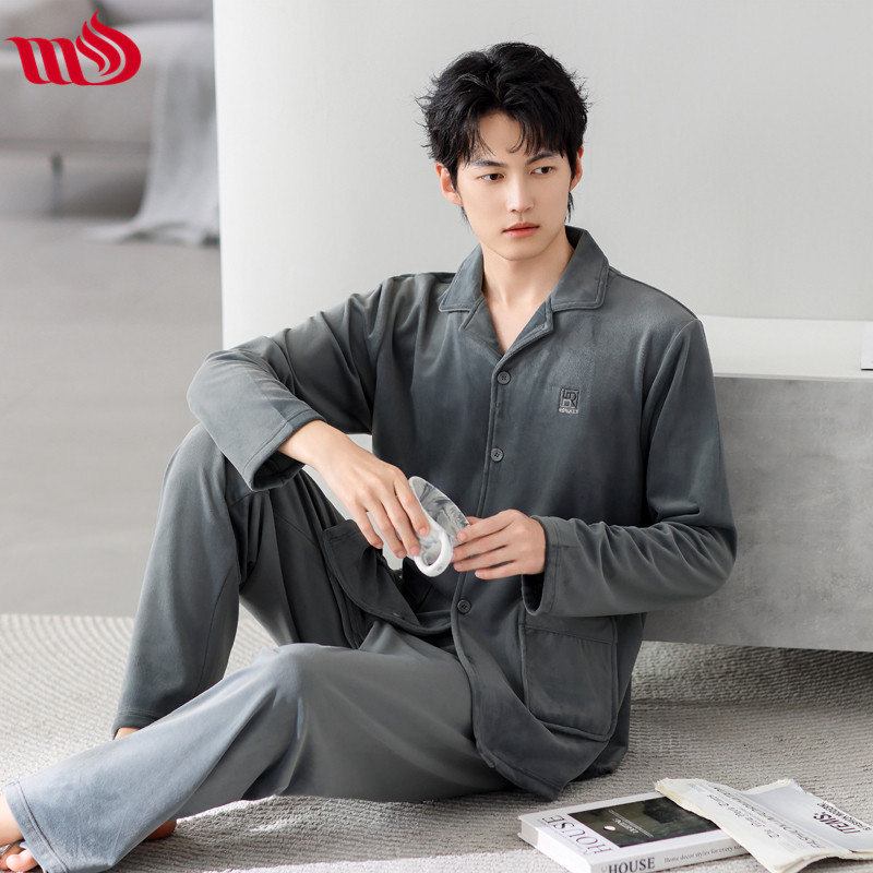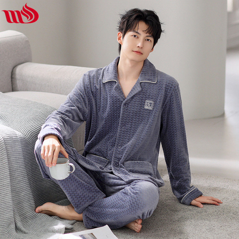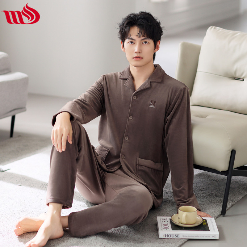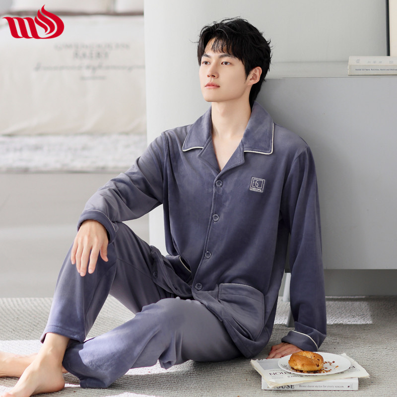 Mulong Aristocratic Family Island Velvet Pajamas 남자의 따뜻한 가을과 겨울 플란넬 홈 옷 두꺼운 산호 벨벳 남자의 새로운 도착스토어 가기