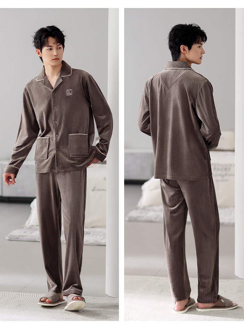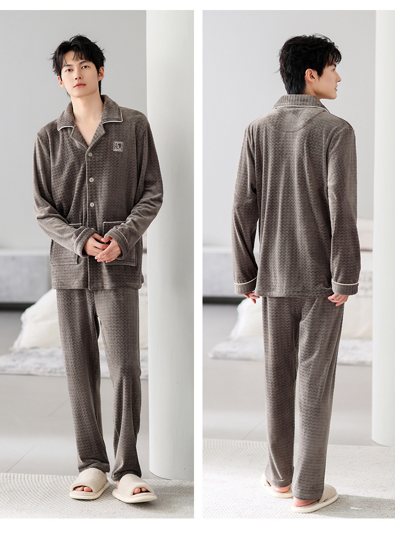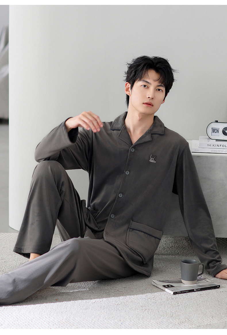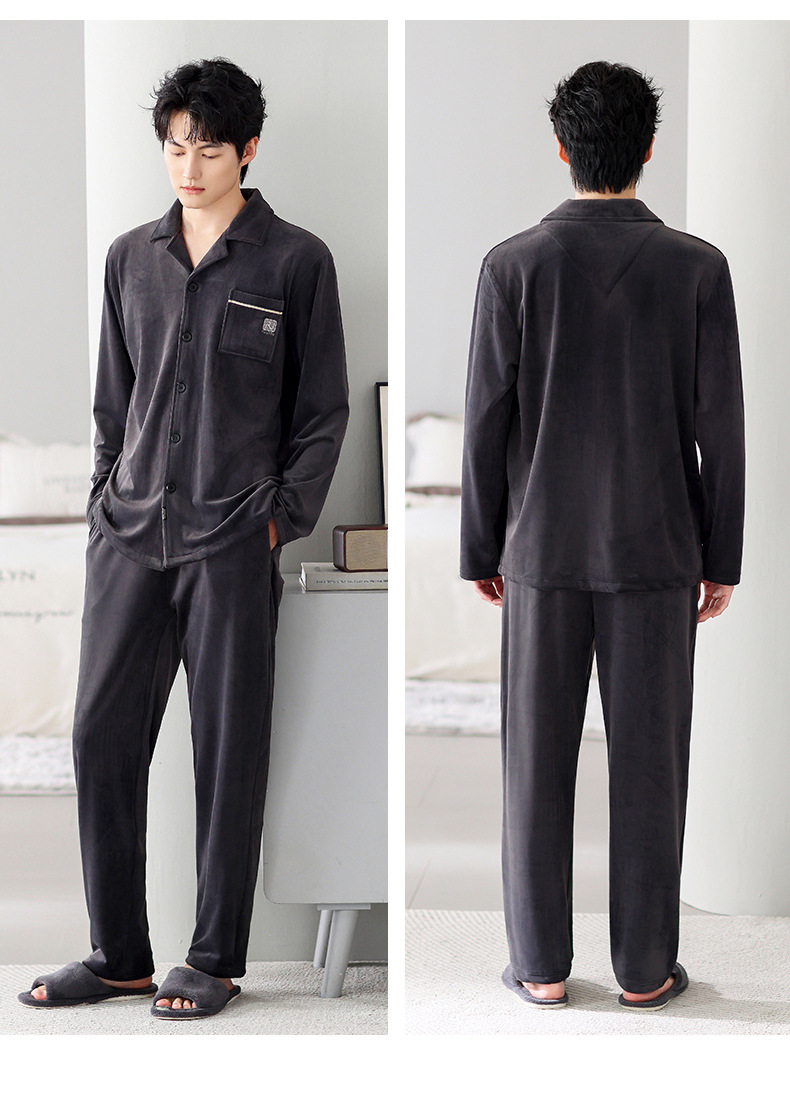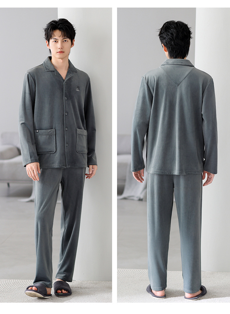 Mulong Aristocratic Family Island Velvet Pajamas 남자의 따뜻한 가을과 겨울 플란넬 홈 옷 두꺼운 산호 벨벳 남자의 새로운 도착스토어 가기