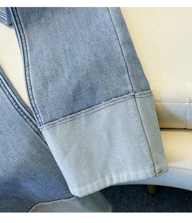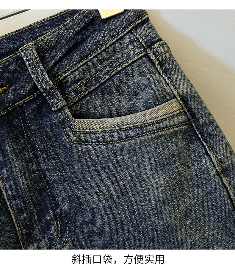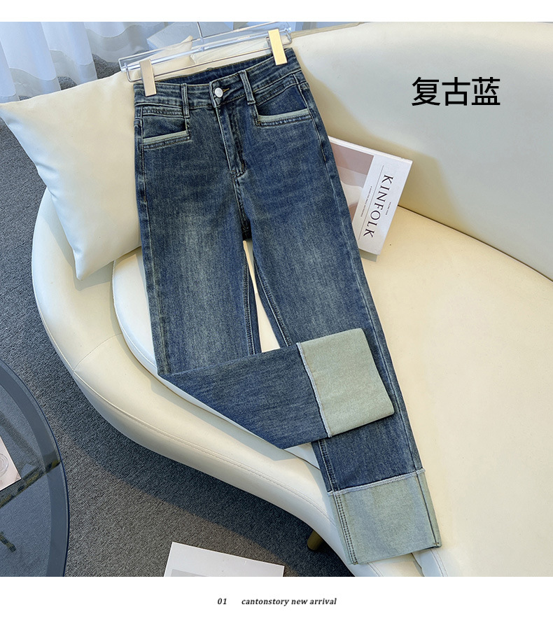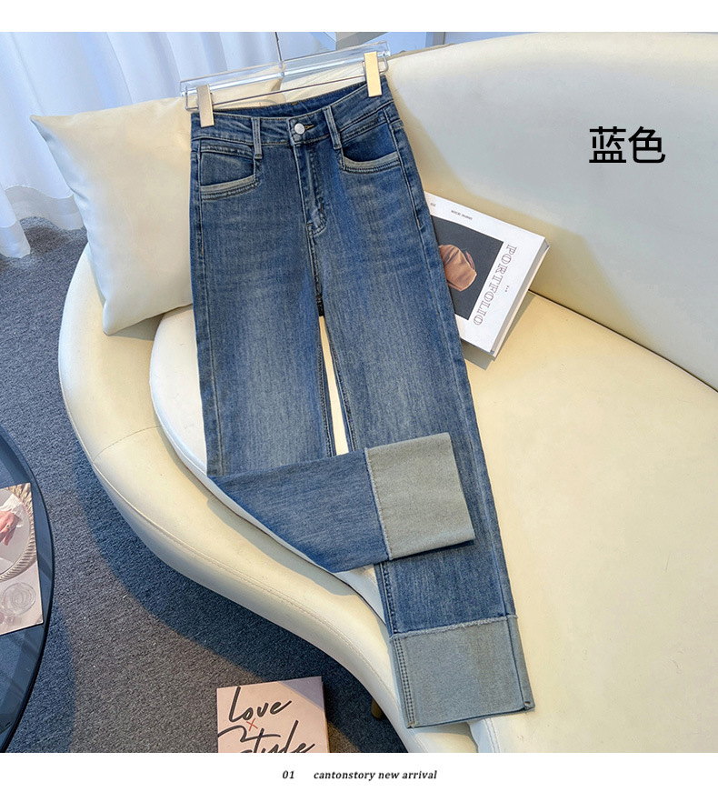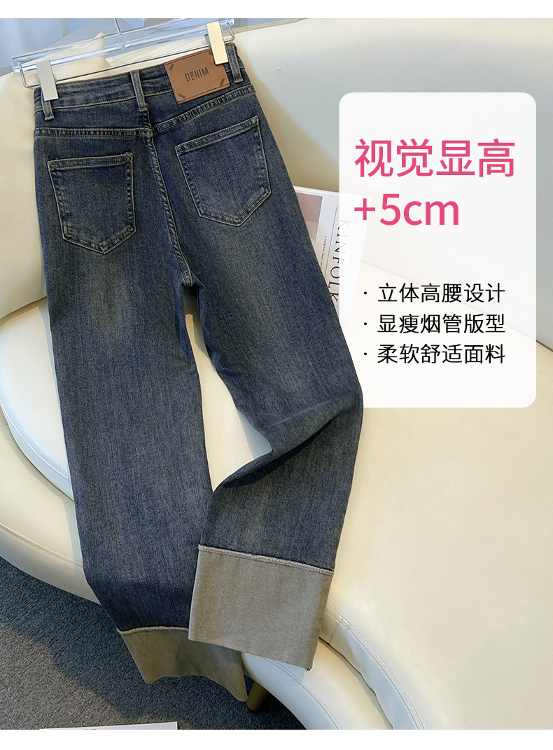 스트레이트 레그 청바지 여성용 봄과 가을 새해 올해 인기있는 바게트 바지 바지 슬림 슬리밍 스트레치 플랜지 자른 바지스토어 가기