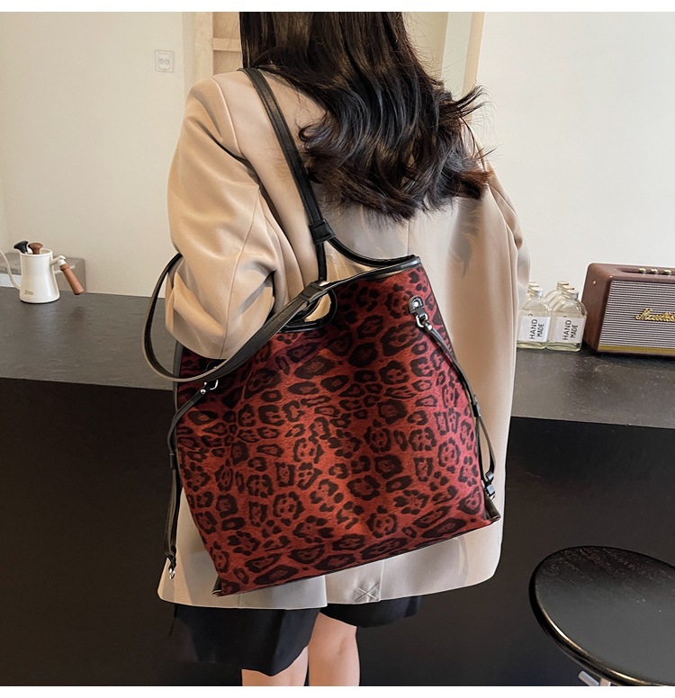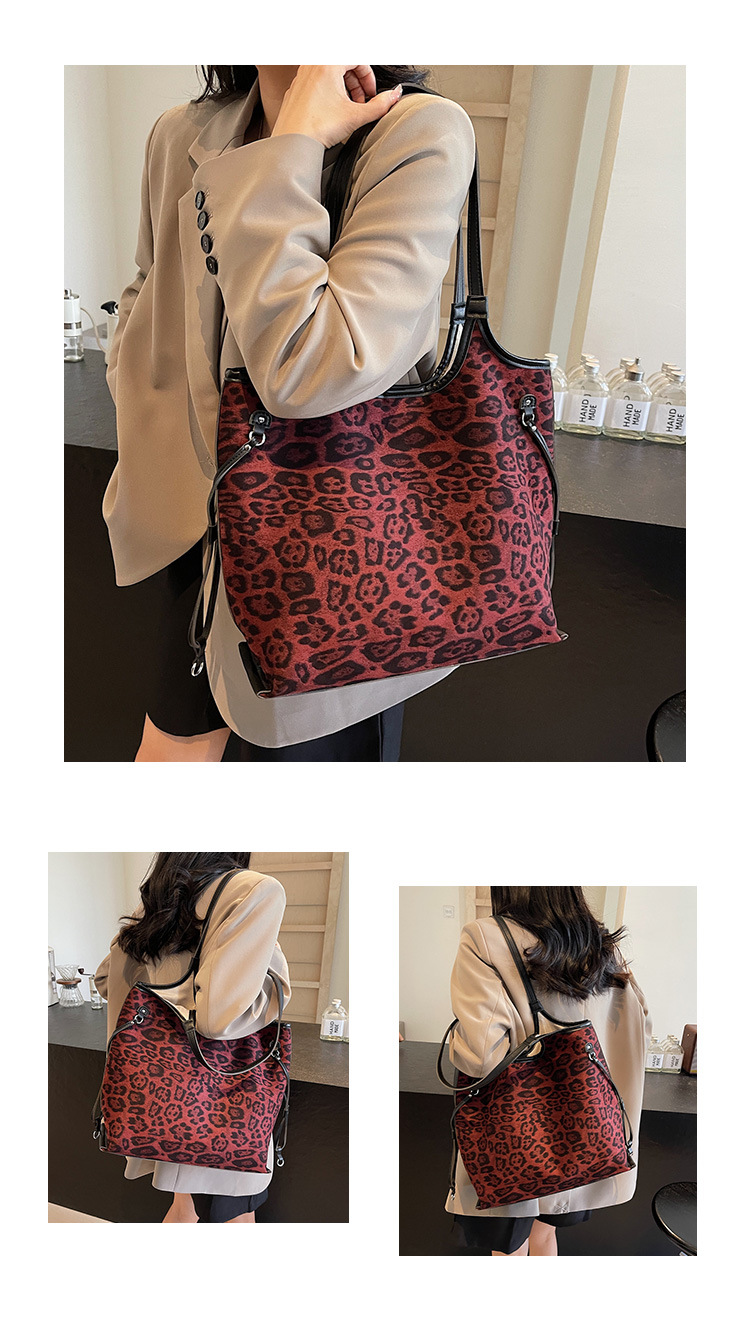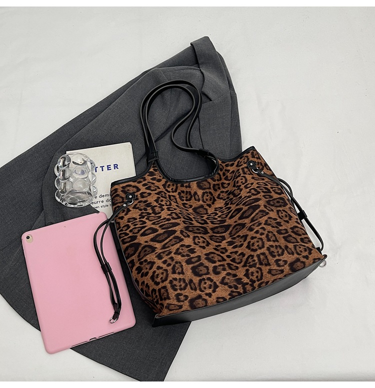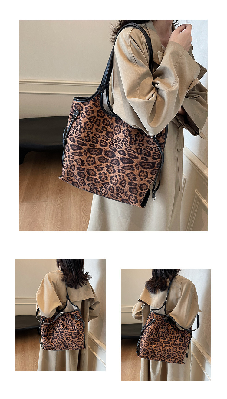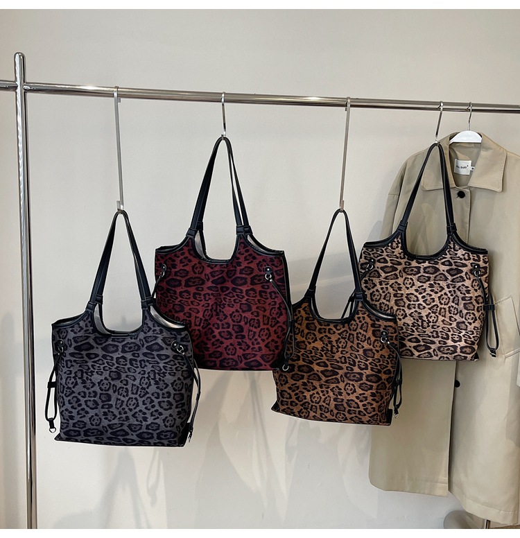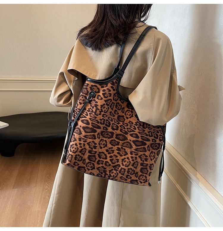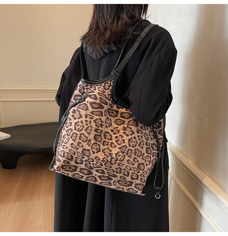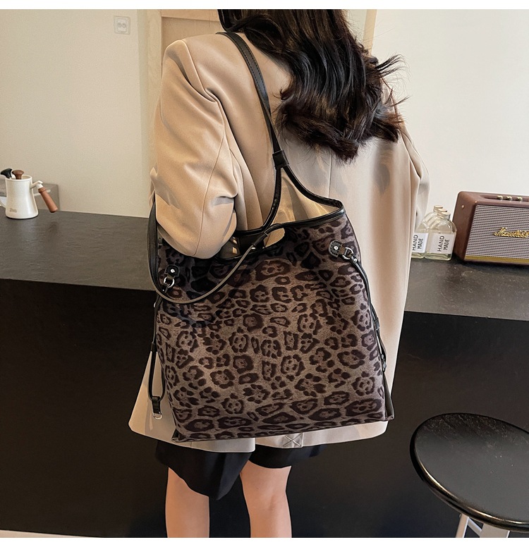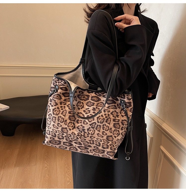 국경 간 여성 가방 복고풍 세련된 토트 백 2024 새로운 가을 패션 레오파드 무늬 대용량 어깨 가방 언더암 가방스토어 가기