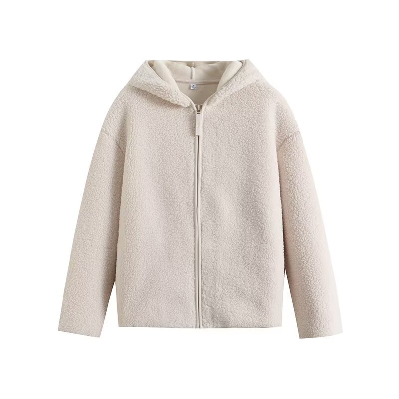 뜨거운 따뜻한 후드 재킷 가을과 겨울 여성 모방 양고기 양털 지퍼 후드 재킷 긴 소매 430644