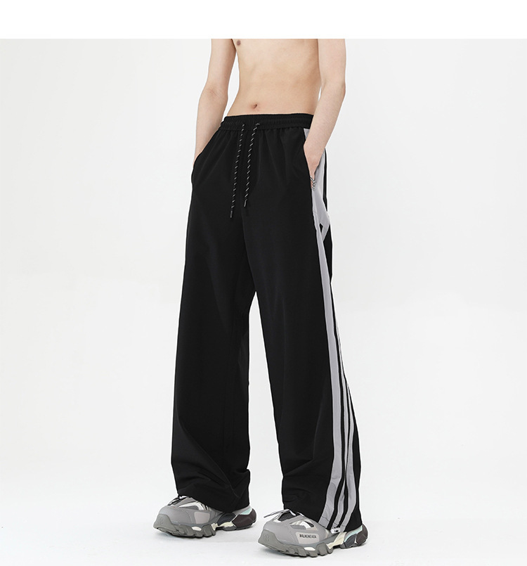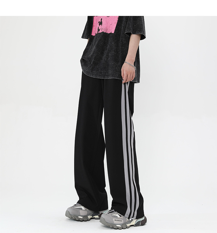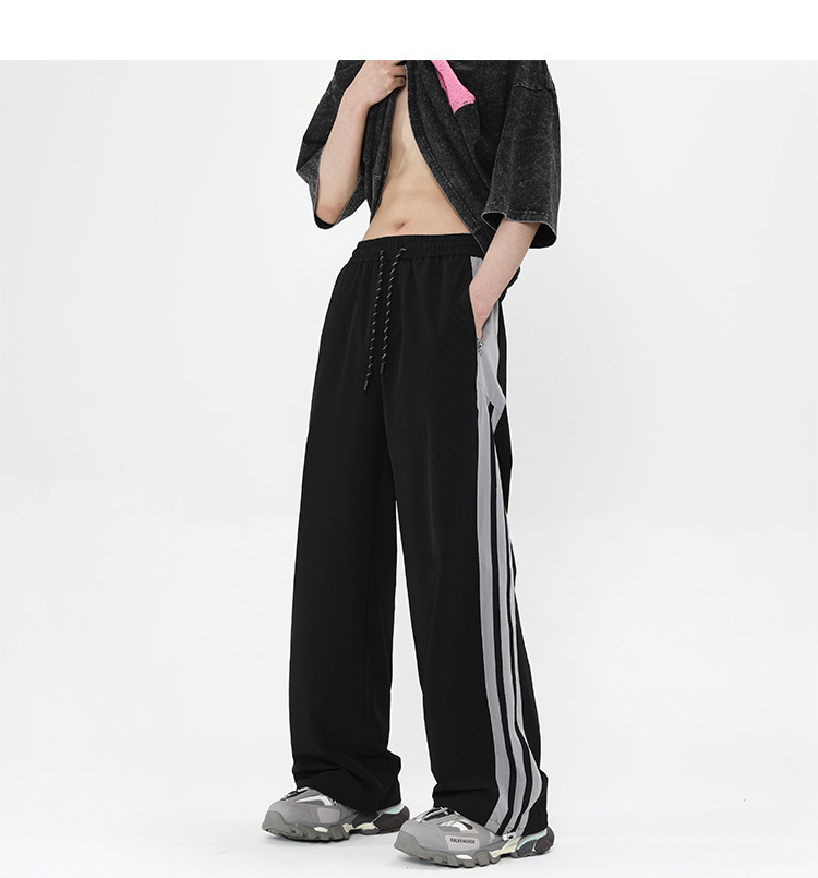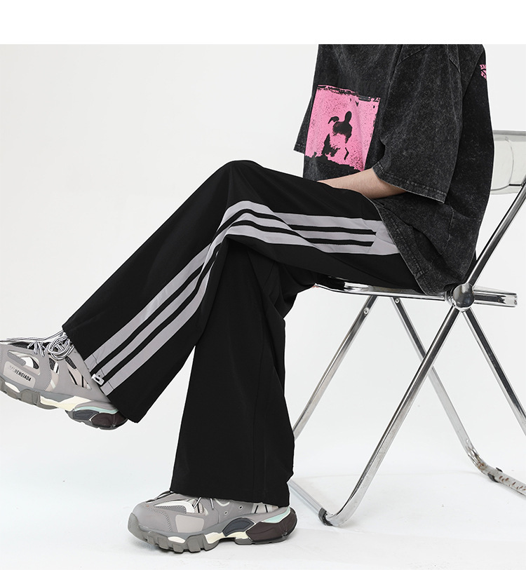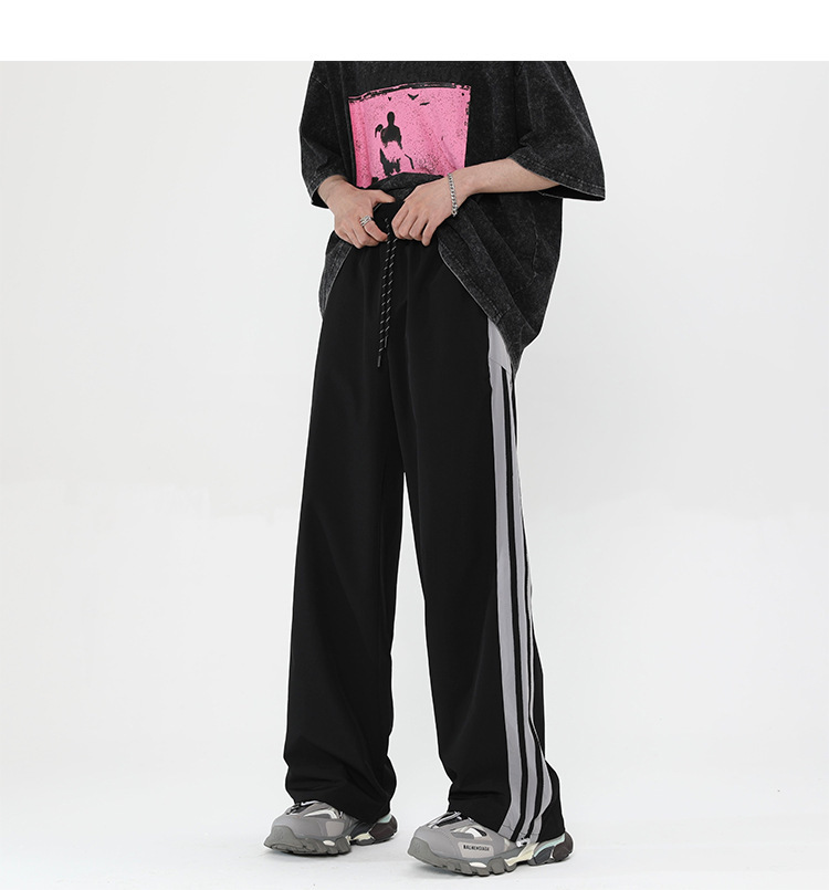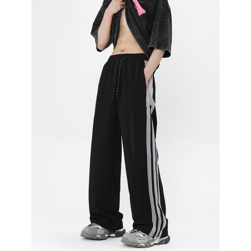 버건디 줄무늬 바지 남자 여름 미국 스타일 하이 스트리트 트렌디 브랜드 느슨한 넓은 다리 스트레이트 캐주얼 스포츠 바지 남자 트렌디스토어 가기