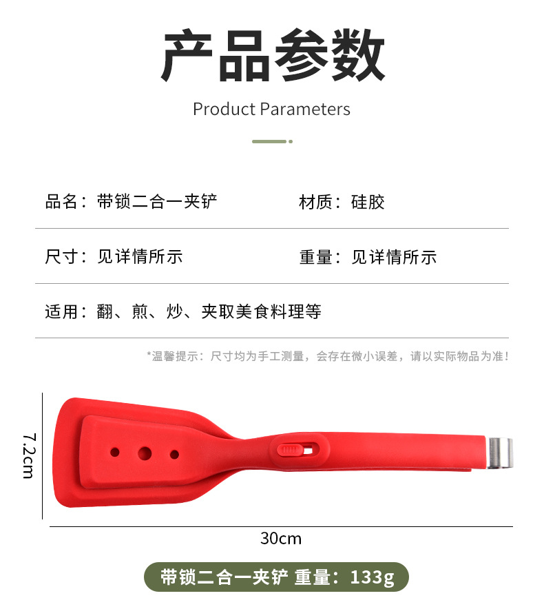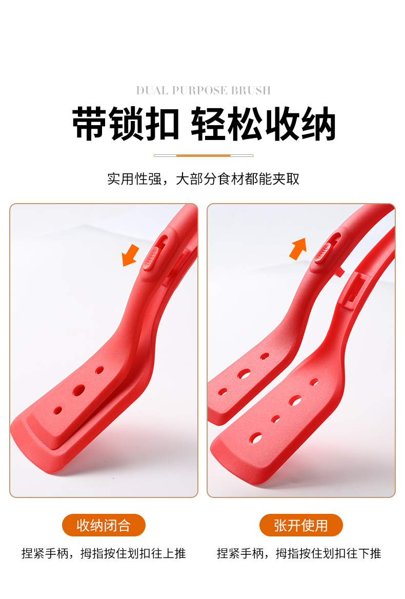 2-in-1 프라이팬 주걱 클립, 실리콘 다기능 스테이크 클립, 생선 프라이팬, 스테인레스 스틸 오믈렛 팬케이크 주걱, 음식 클립