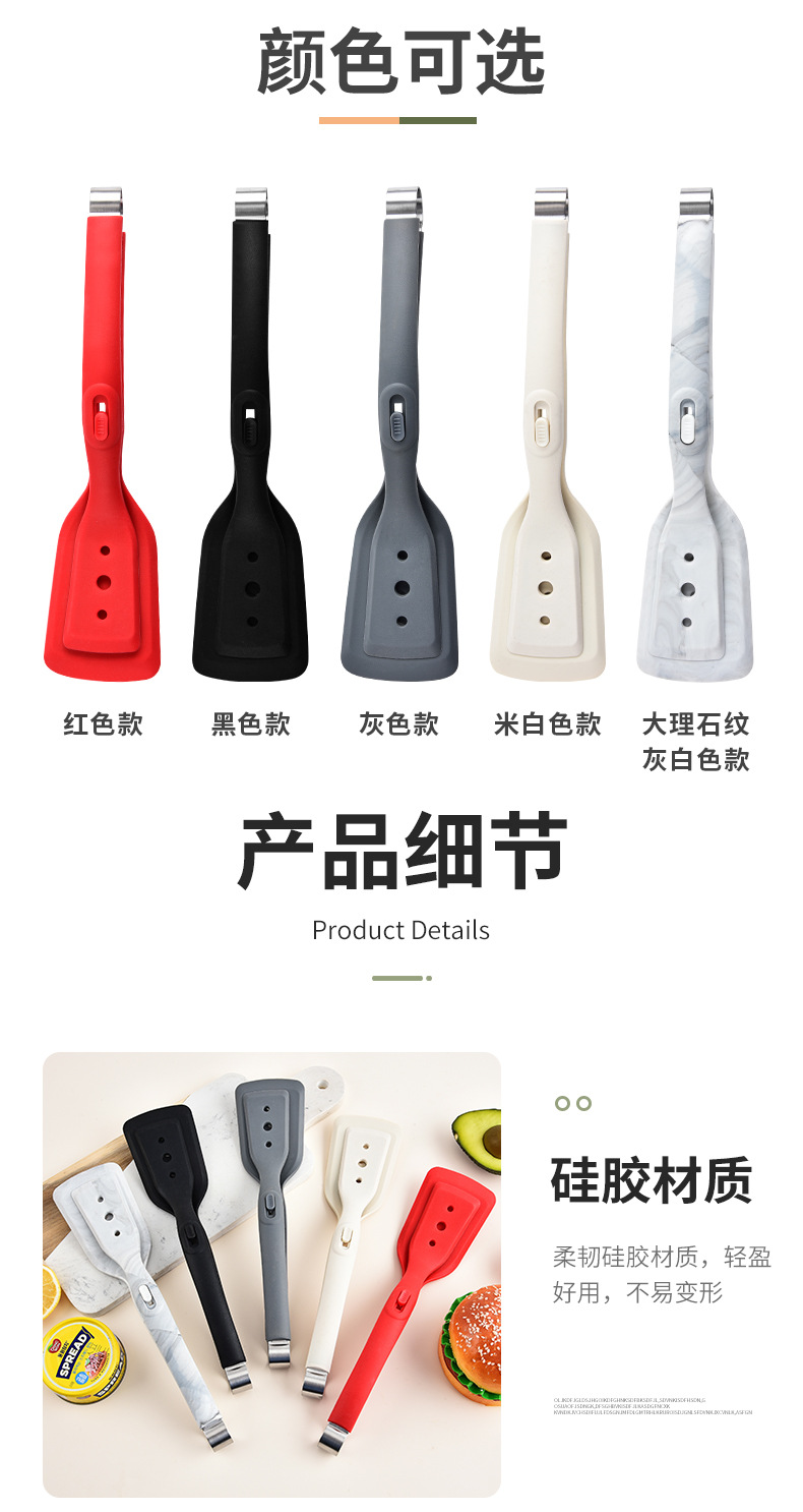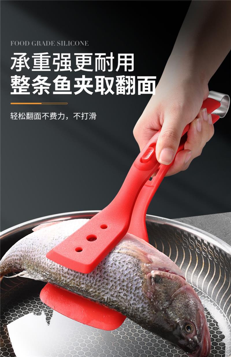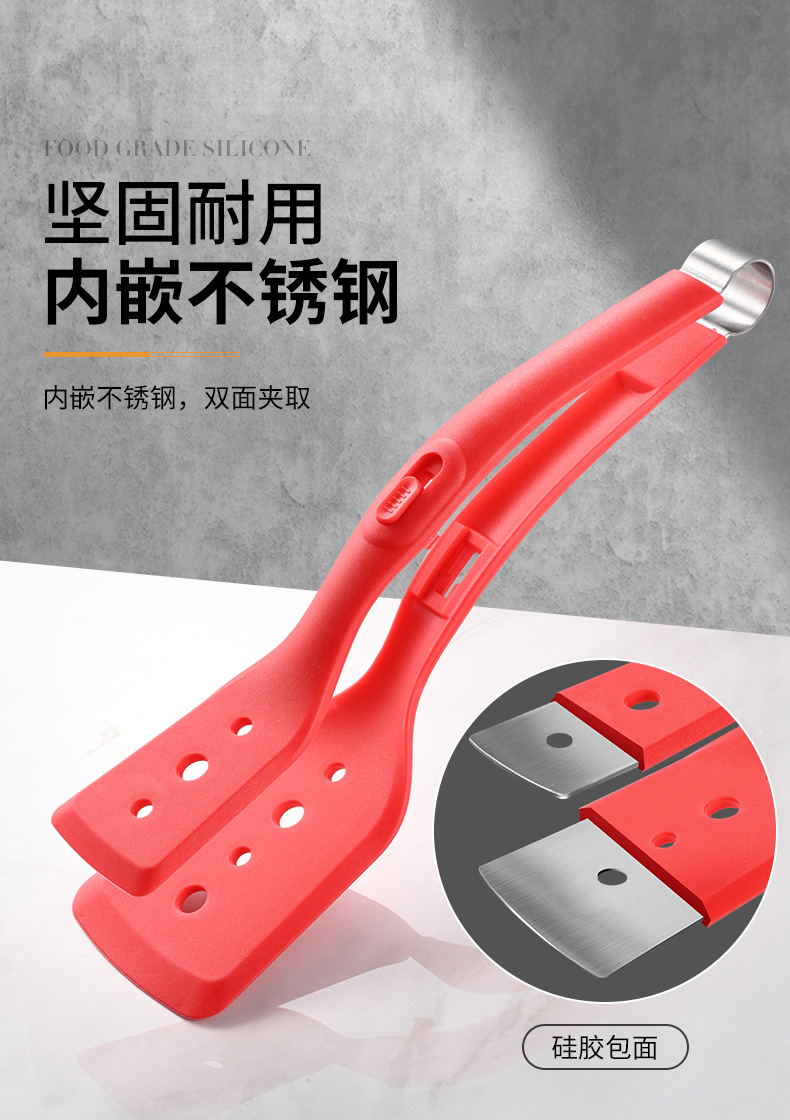 2-in-1 프라이팬 주걱 클립, 실리콘 다기능 스테이크 클립, 생선 프라이팬, 스테인레스 스틸 오믈렛 팬케이크 주걱, 음식 클립스토어 가기