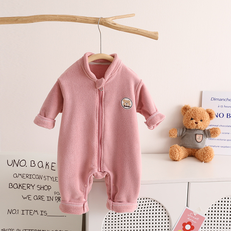 소년 소녀를위한 가을과 겨울 아기 크롤링 세트 아기 더블 레이어 올리 벨벳 따뜻한 점프 수트 가을과 겨울 지퍼 슬리핑 백