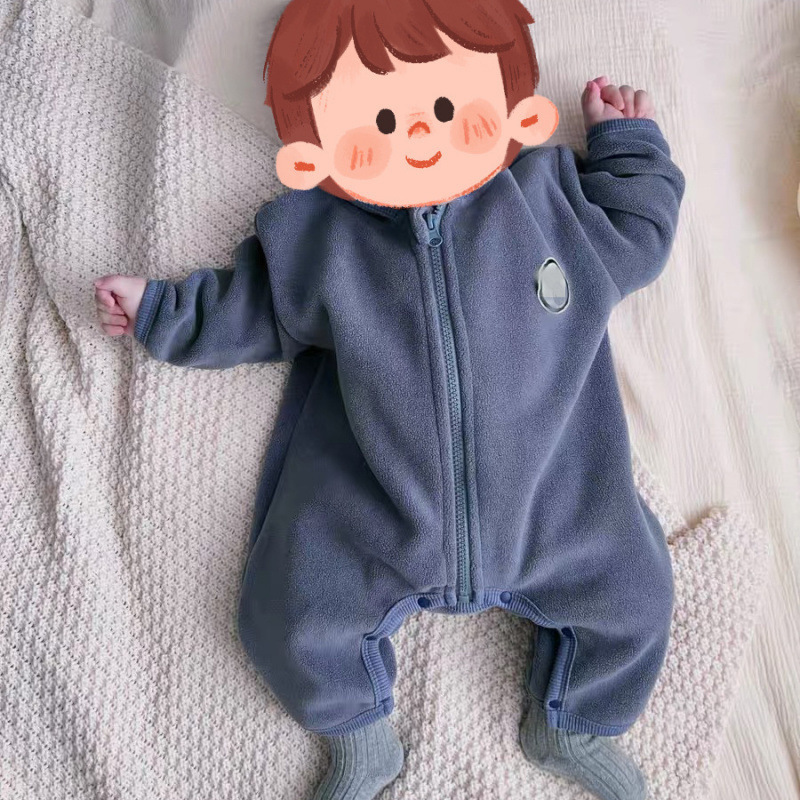 소년 소녀를위한 가을과 겨울 아기 크롤링 세트 아기 더블 레이어 올리 벨벳 따뜻한 점프 수트 가을과 겨울 지퍼 슬리핑 백스토어 가기