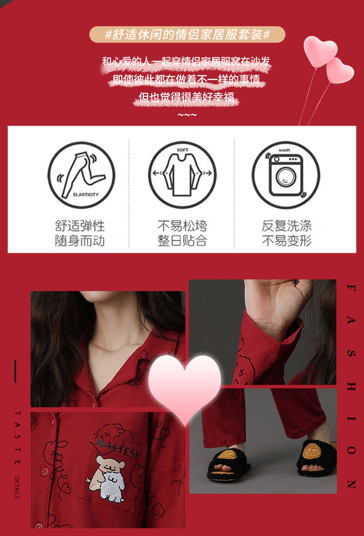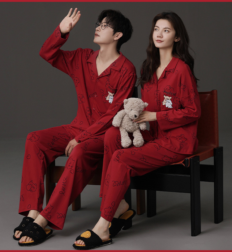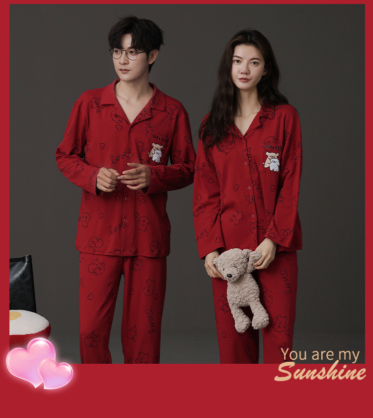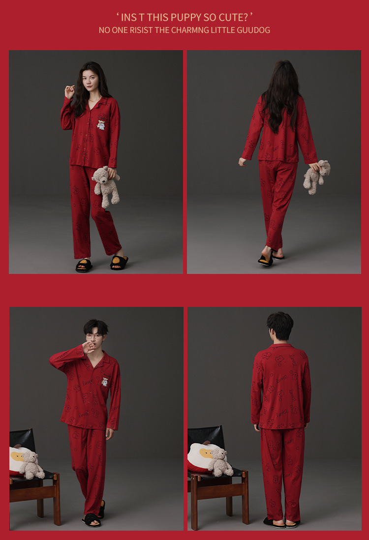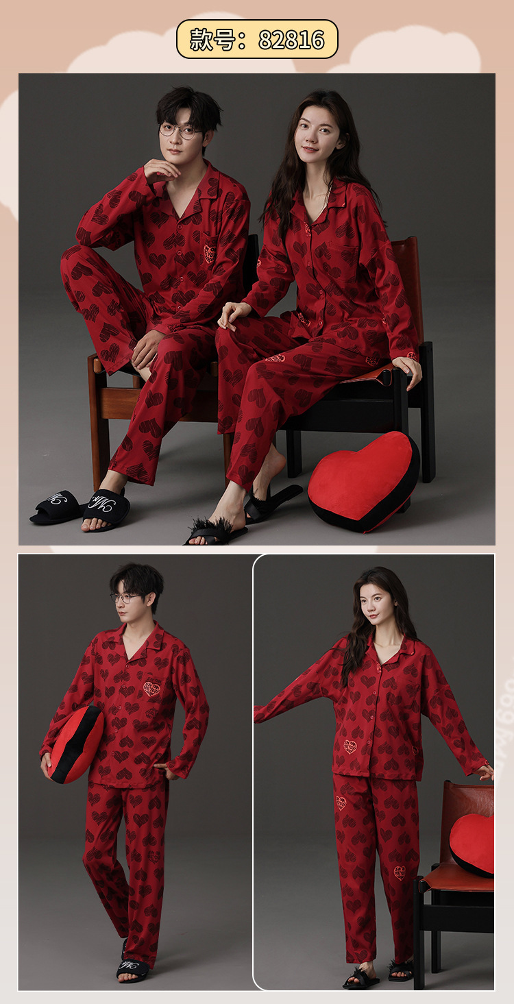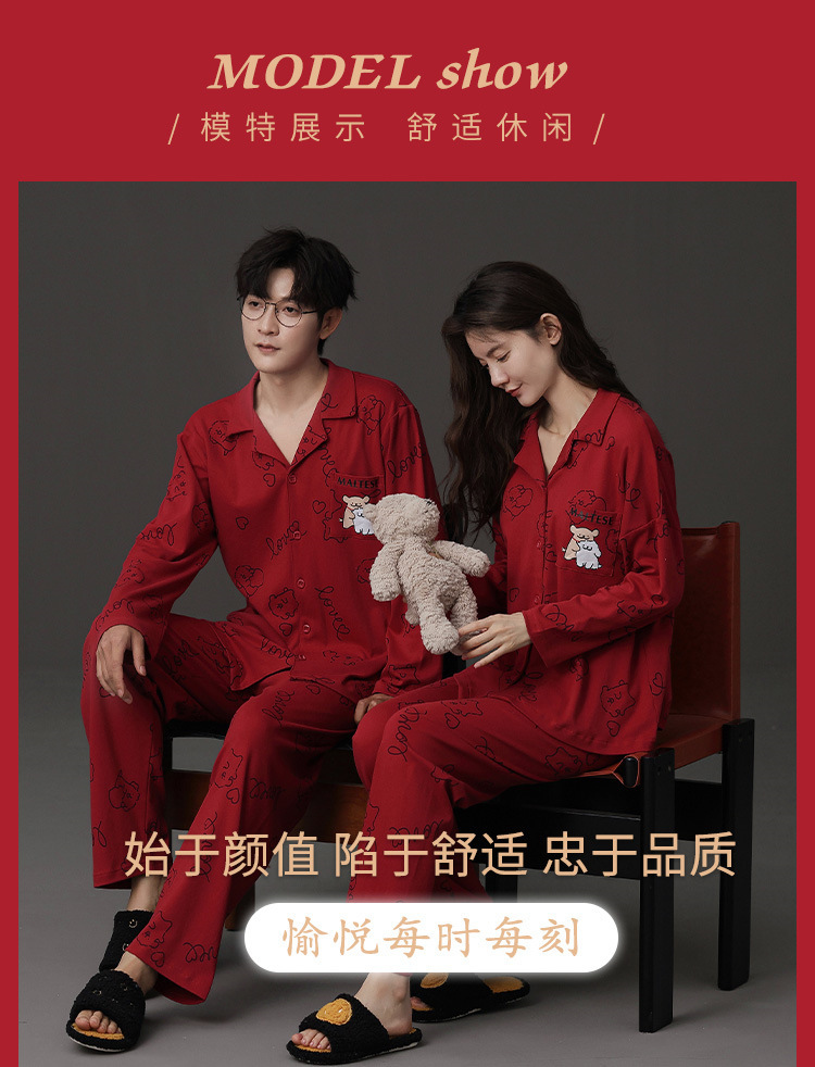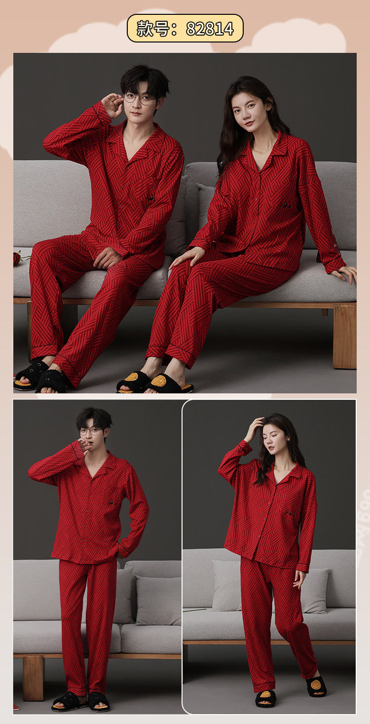 신혼 웨딩 커플 잠옷 봄과 가을 긴 소매 여성 벨트 가슴 패드 카디건 레드 라이프 레드 이어 레드 홈 의류 세트스토어 가기