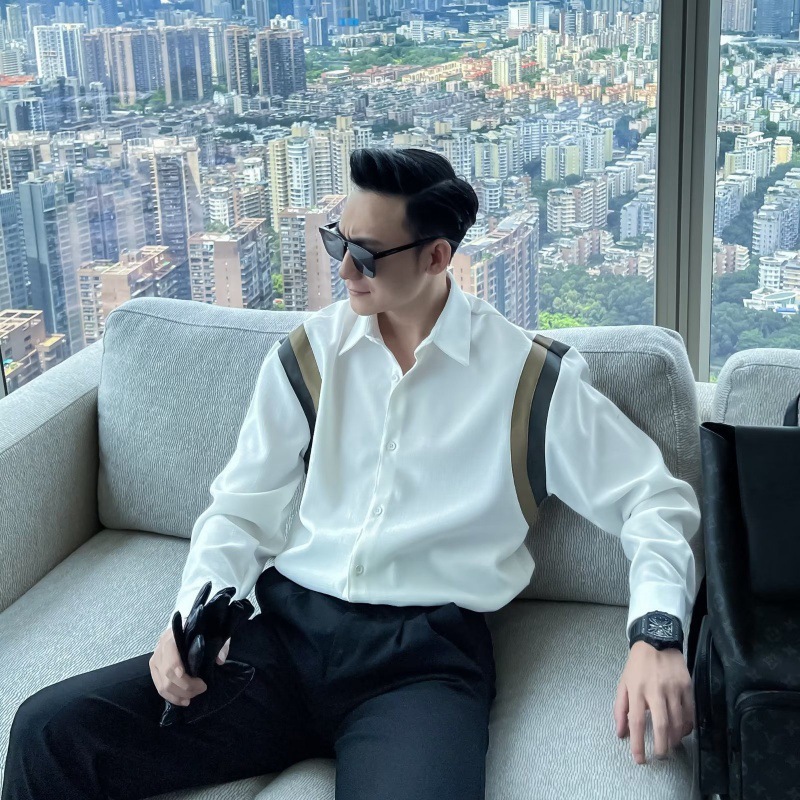 간단한 레트로 바느질 남자의 긴팔 셔츠 유행 한국 스타일 라이트 성숙한 스타일 라이트 비즈니스 우아한 하이 엔드 셔츠 1