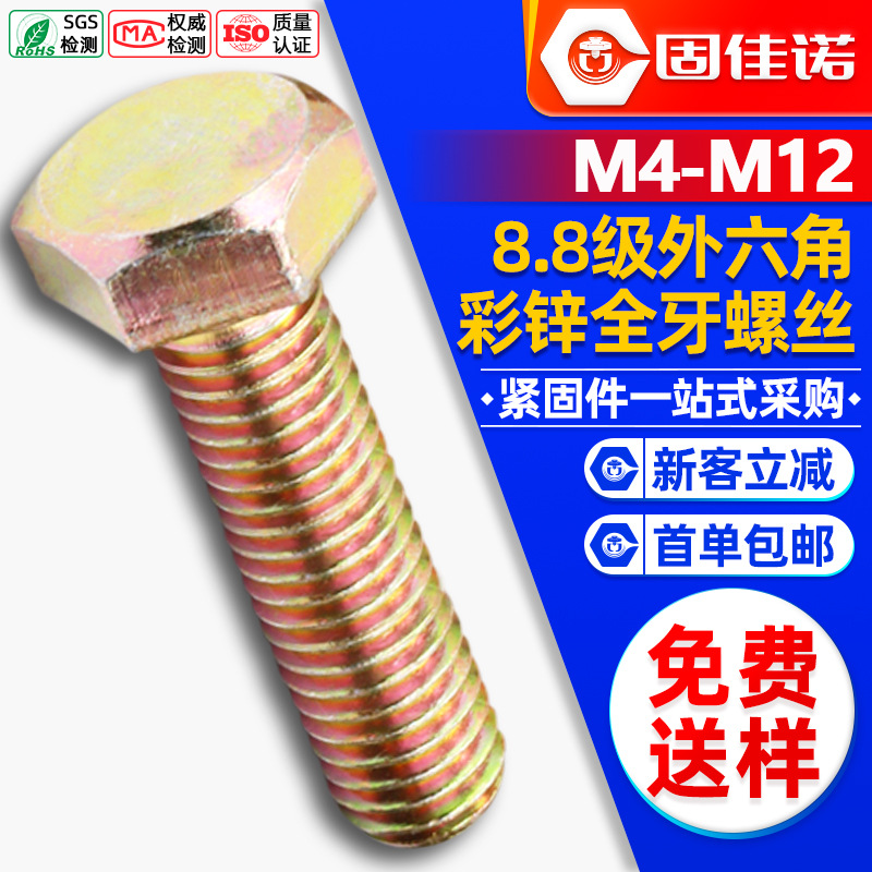 아연 도금 외부 육각 나사 등급 8.8 컬러 아연 외부 육각 볼트 고강도 나사 Daquan M6M8M10M12스토어 가기