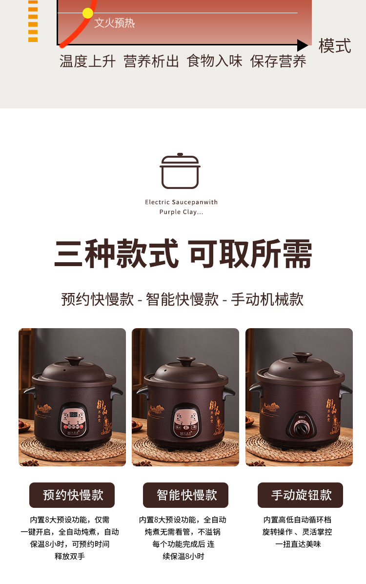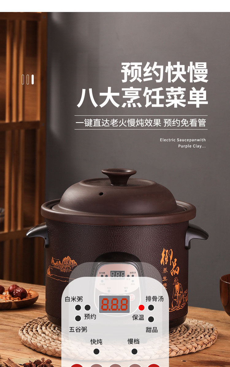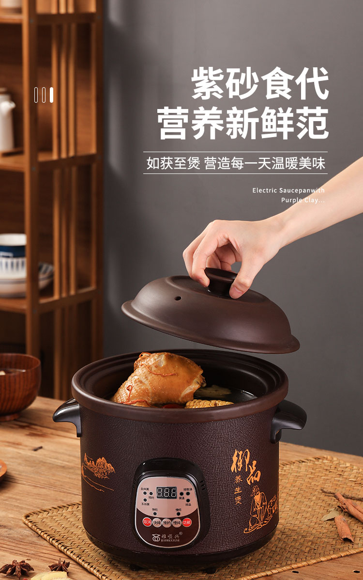 전기 스튜 냄비 세라믹 수프 요리 가정 건강 수프 죽 끓는 유물 자동 지능형 다기능 스튜 구 보라색 캐서롤 냄비스토어 가기