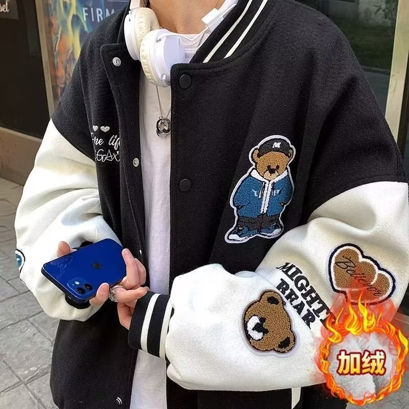 국경 간 대외 무역 야구 세트 기지 느슨한 가을과 겨울 원래 하이 스트리트 플러스 사이즈 야구 세트 재킷 홍콩 스타일 남성스토어 가기
