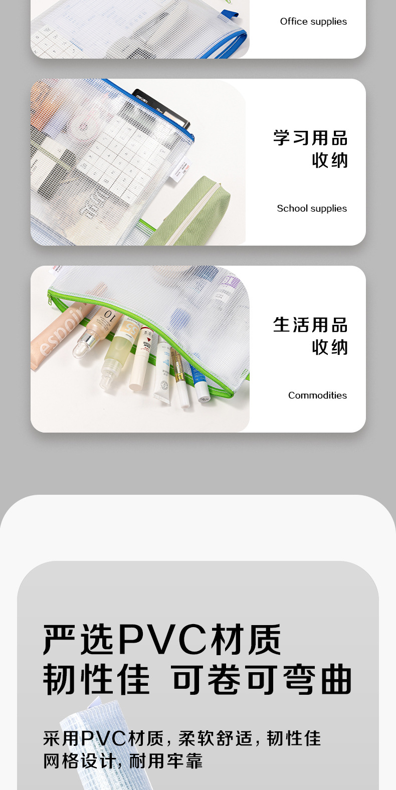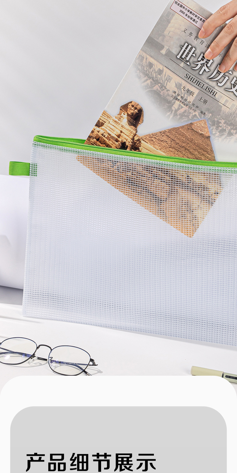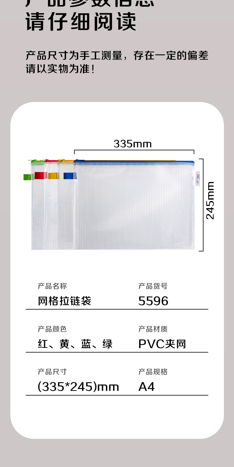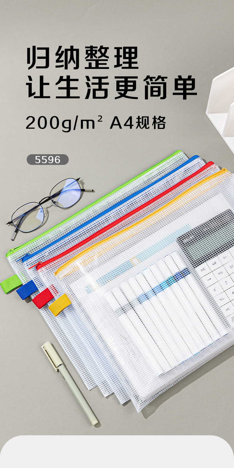 델리 A4 파일 가방 5596 두꺼운 메쉬 지퍼 가방 대용량 컬러 투명 테스트 용지 데이터 저장 가방스토어 가기