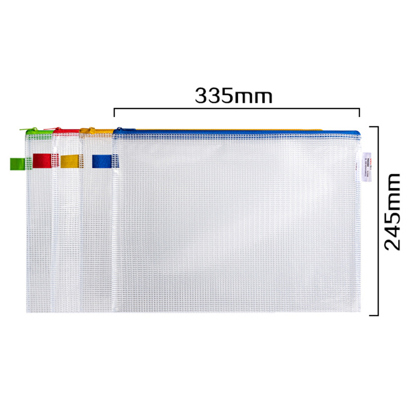 델리 A4 파일 가방 5596 두꺼운 메쉬 지퍼 가방 대용량 컬러 투명 테스트 용지 데이터 저장 가방