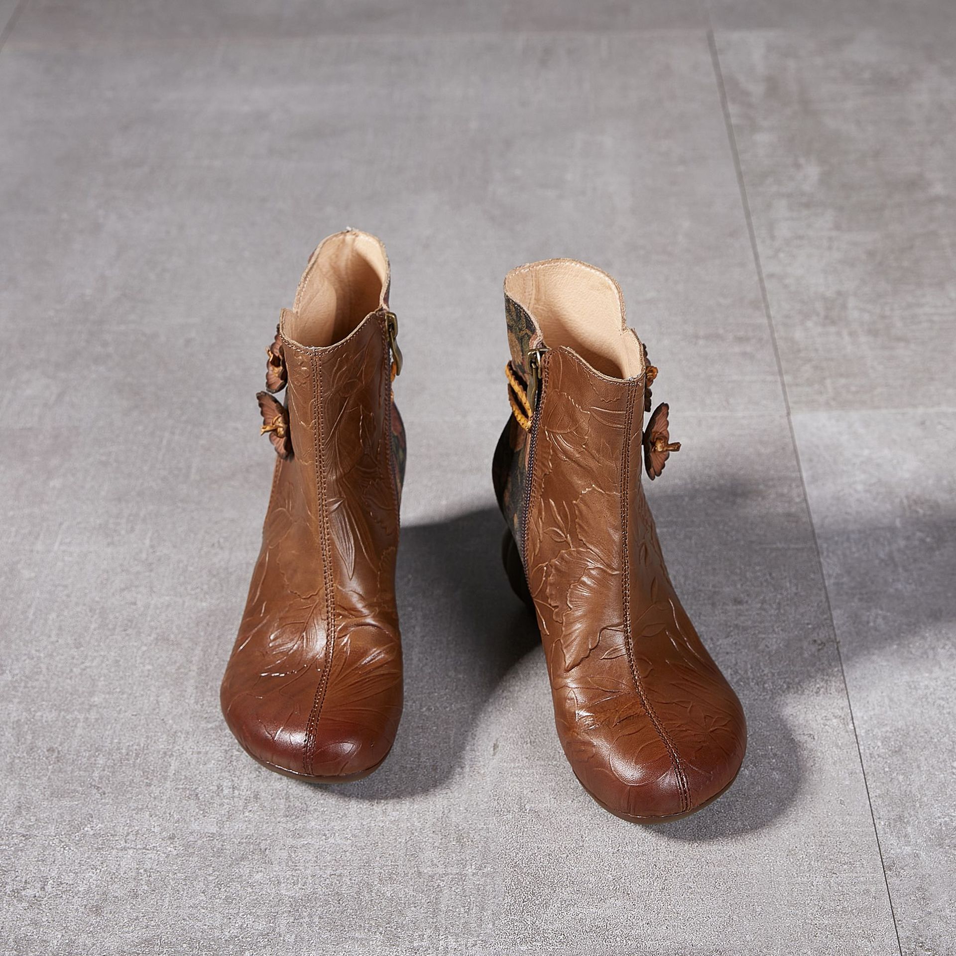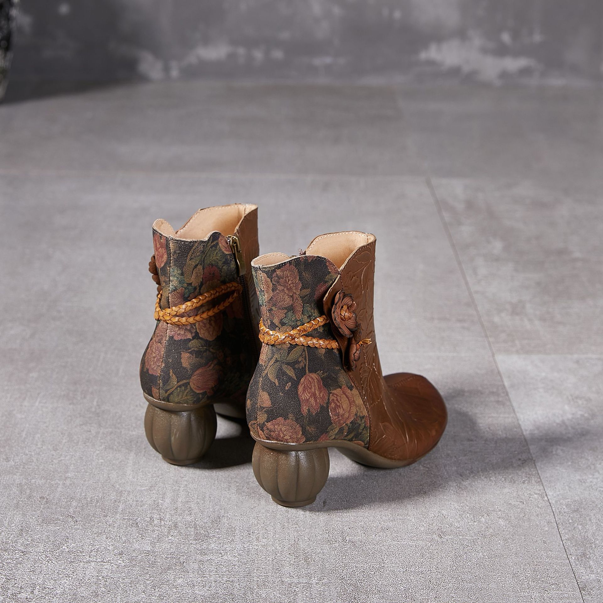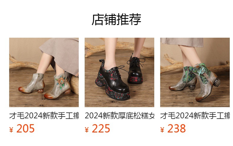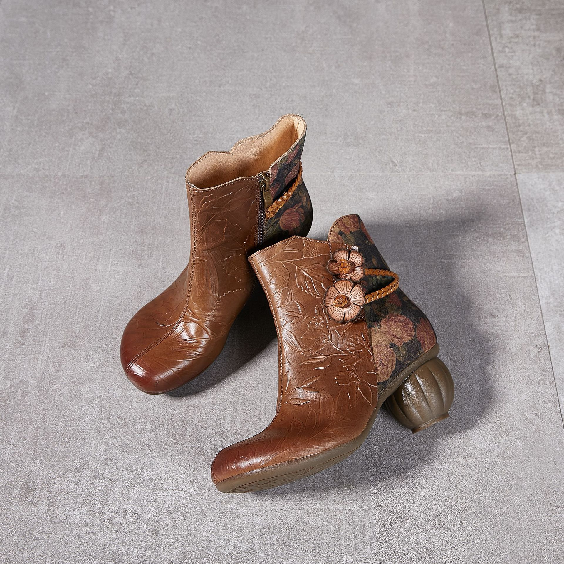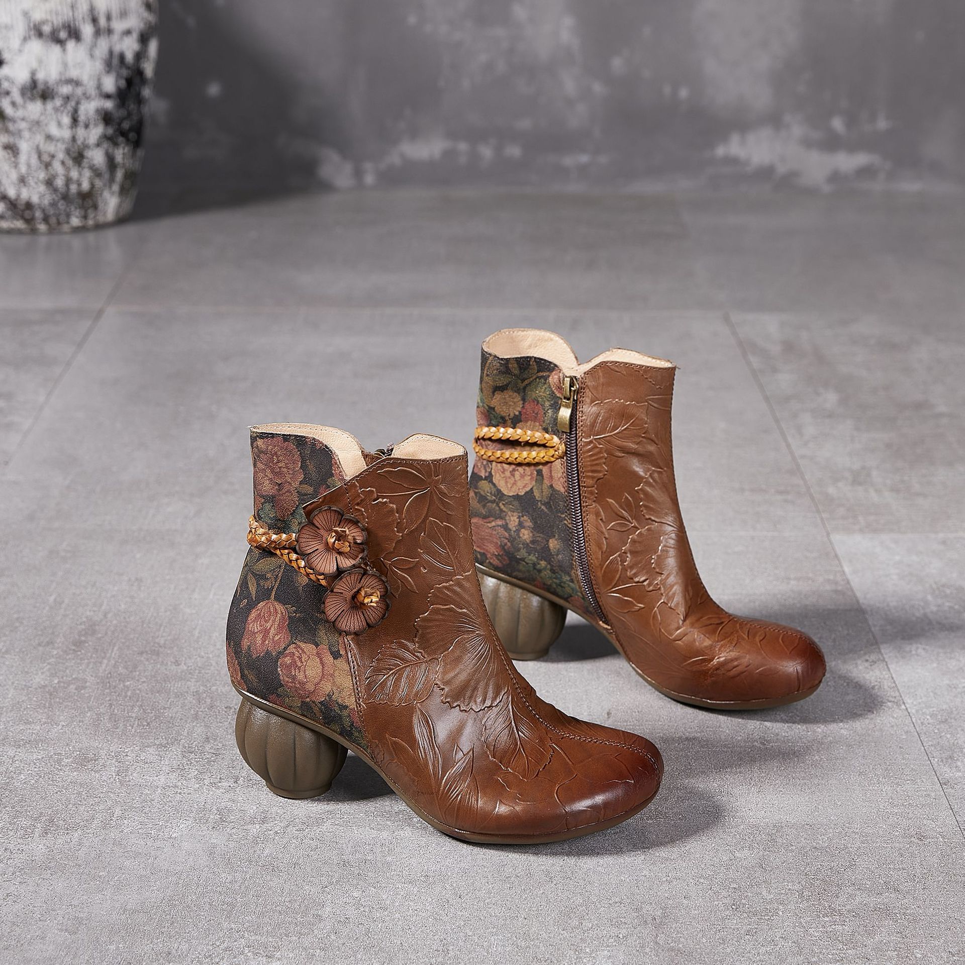 2024 새로운 Cowhide 꽃 국가 스타일 하이힐 여성 부츠 국가 스타일 올 매치 레트로 여성 신발 공장 Daifa스토어 가기
