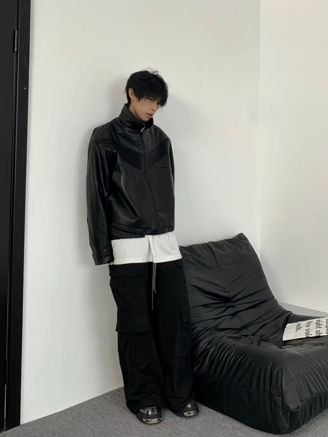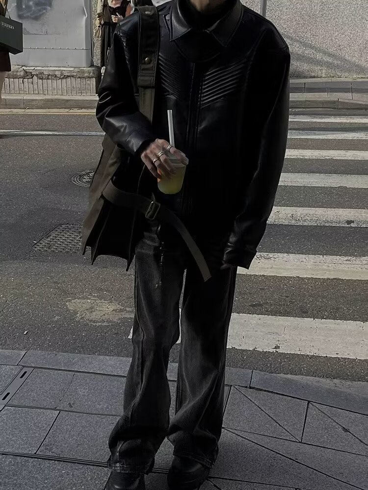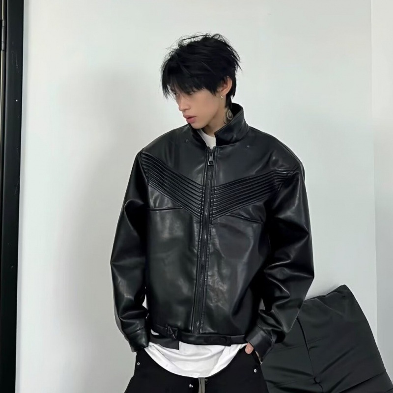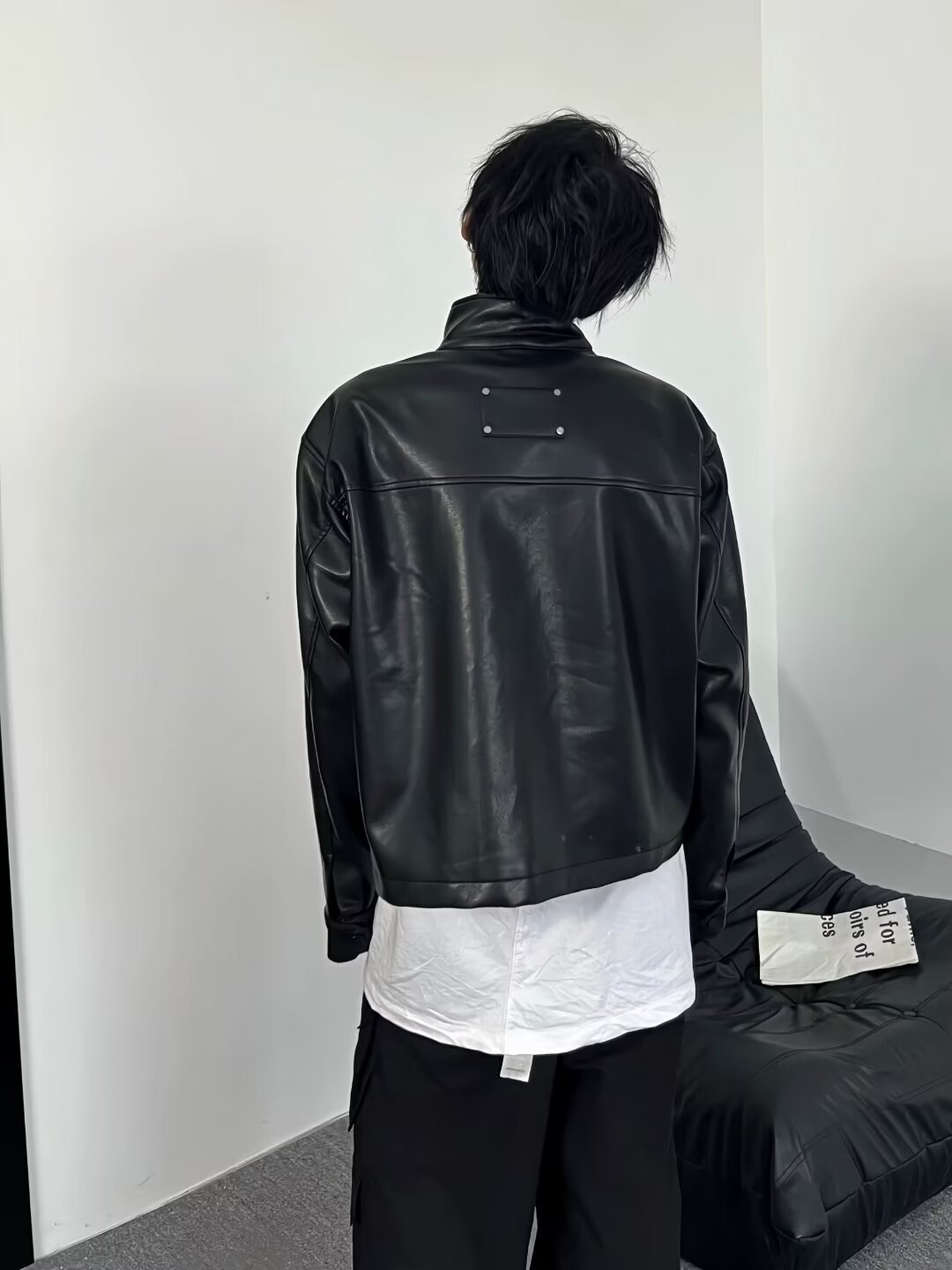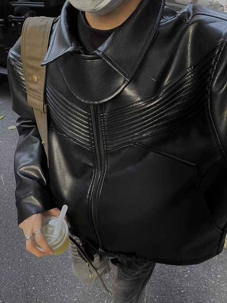 국경 간 미국식 레트로 파커 의류 남성 통근 루스 캐주얼 루프 스톡 핸섬 오토바이 가죽 재킷 짧은 방풍 재킷