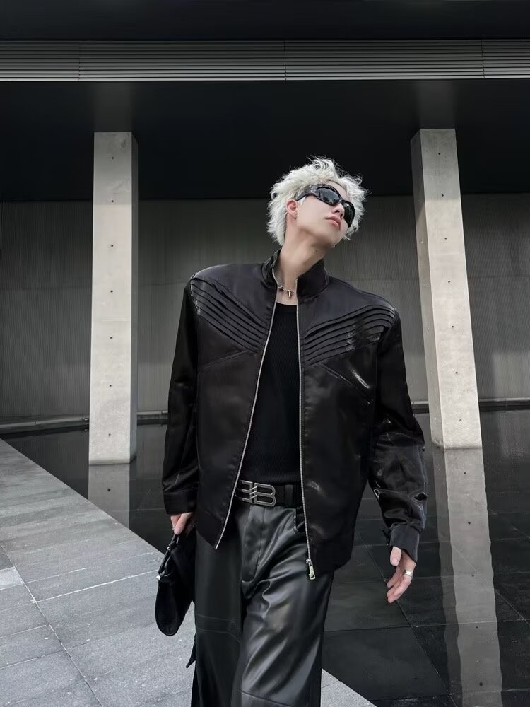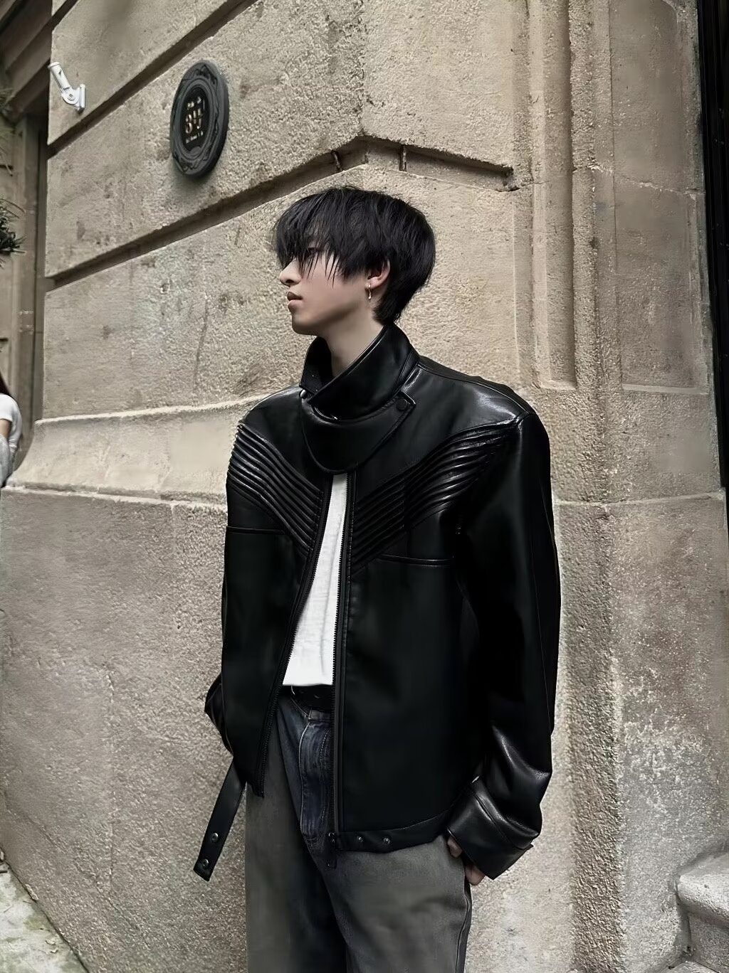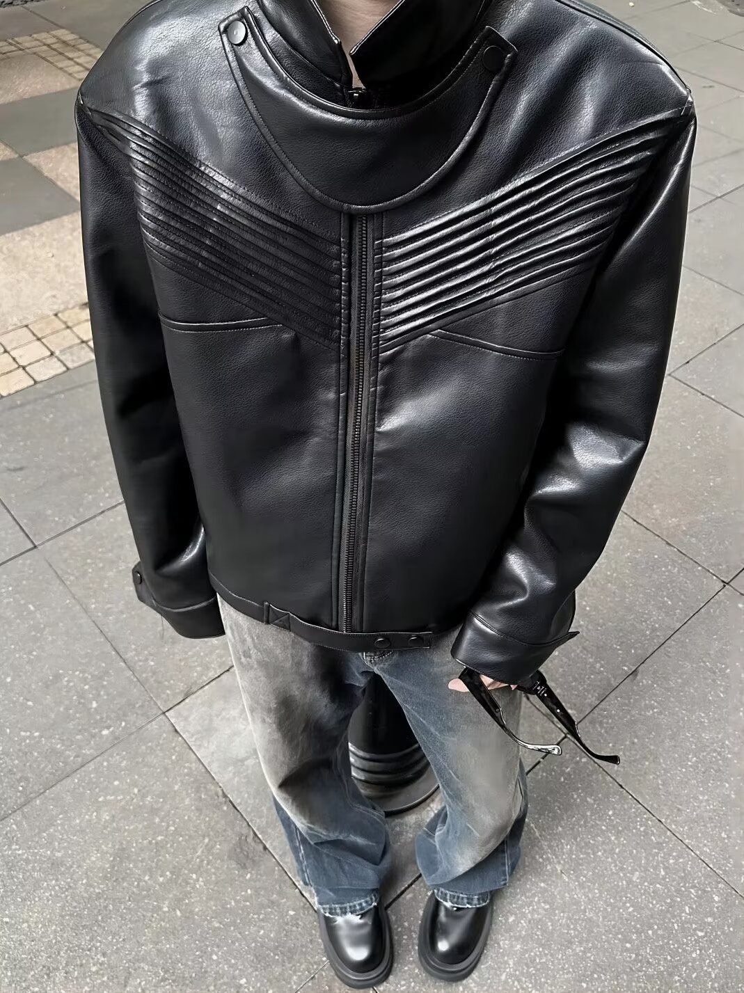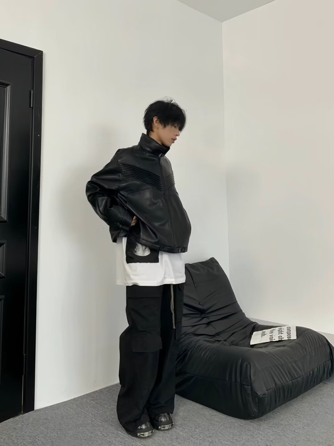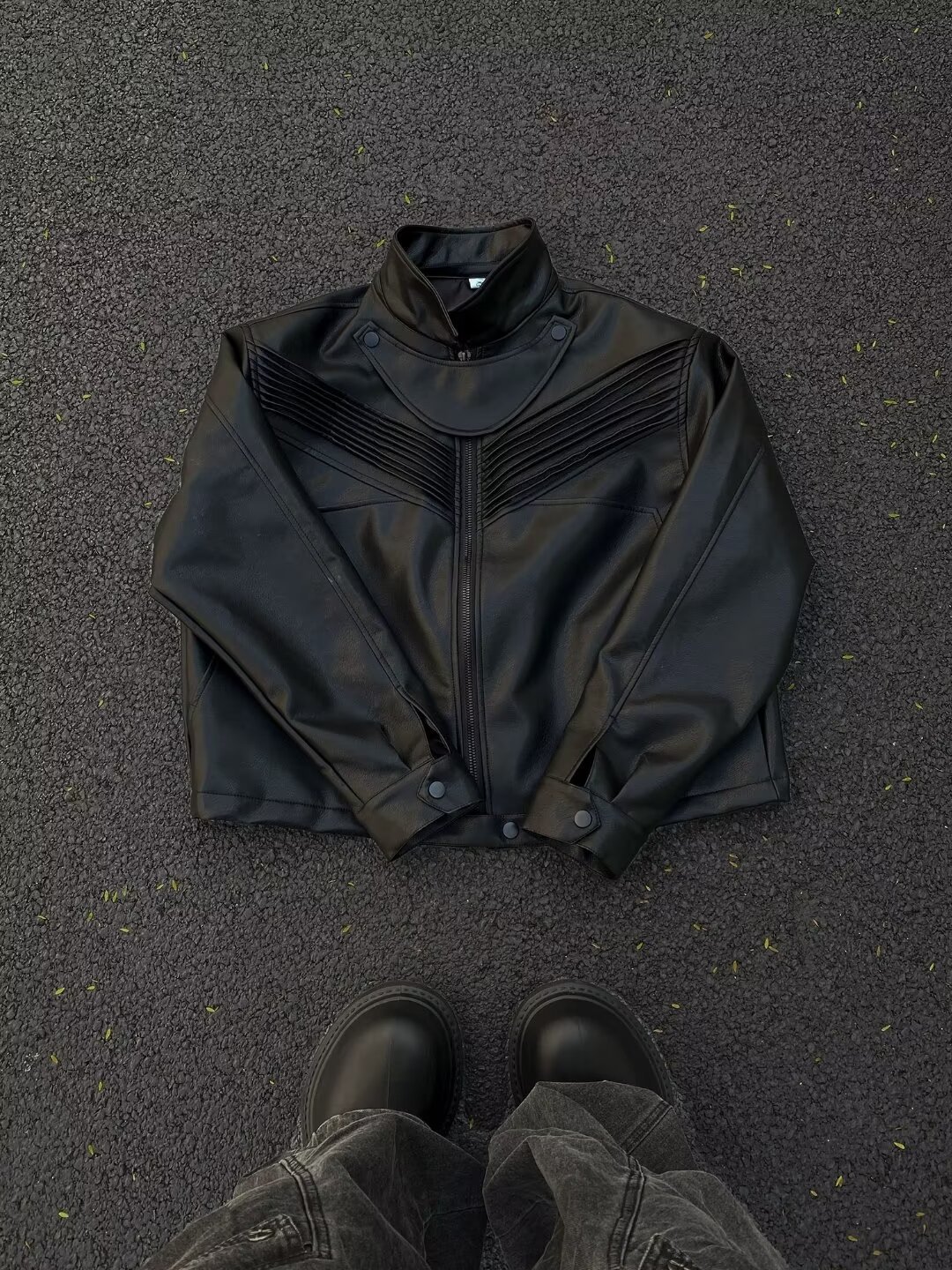 국경 간 미국식 레트로 파커 의류 남성 통근 루스 캐주얼 루프 스톡 핸섬 오토바이 가죽 재킷 짧은 방풍 재킷