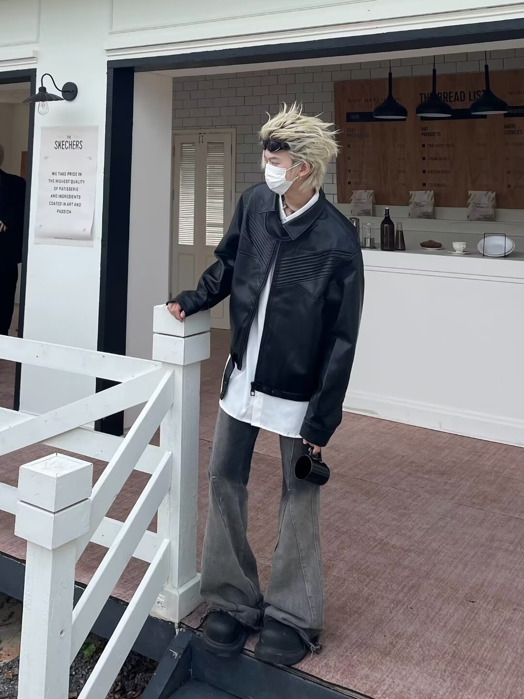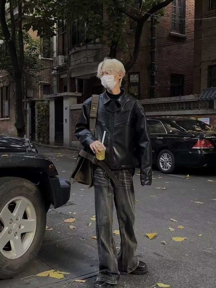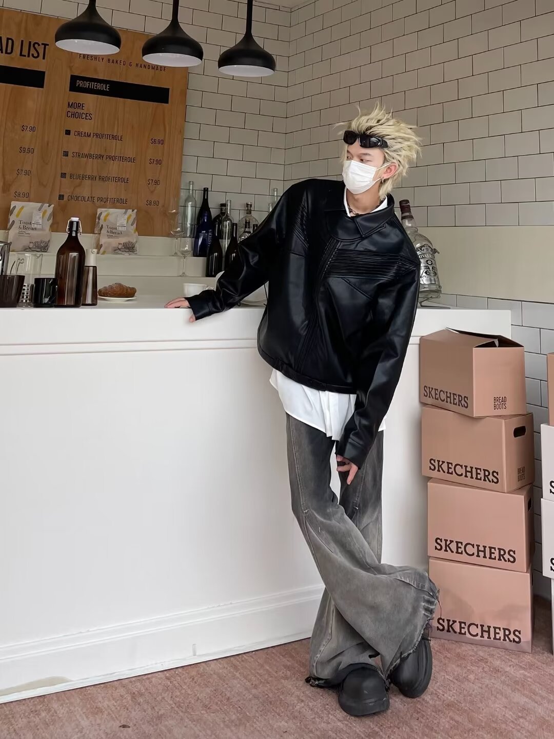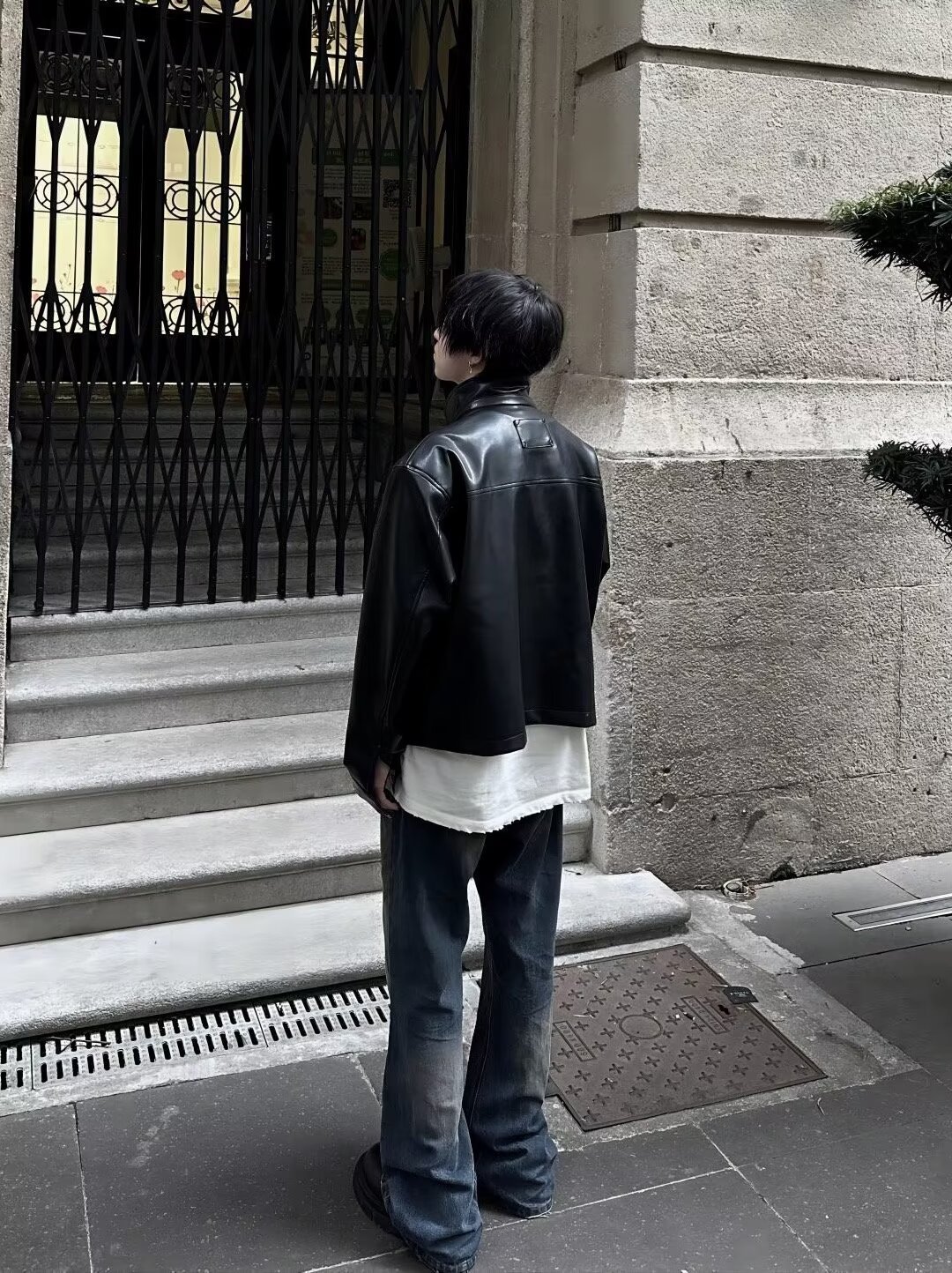 국경 간 미국식 레트로 파커 의류 남성 통근 루스 캐주얼 루프 스톡 핸섬 오토바이 가죽 재킷 짧은 방풍 재킷스토어 가기