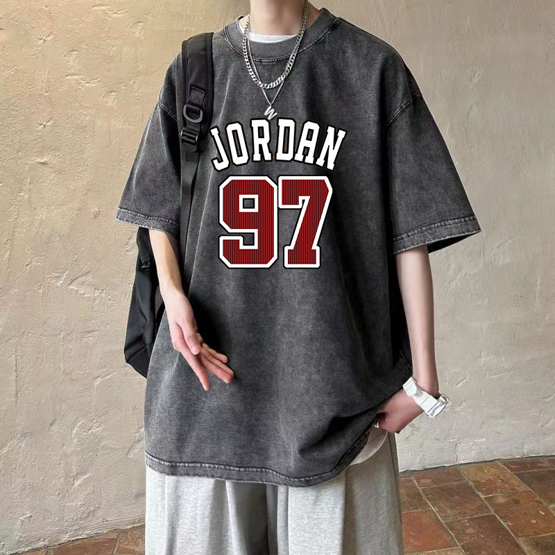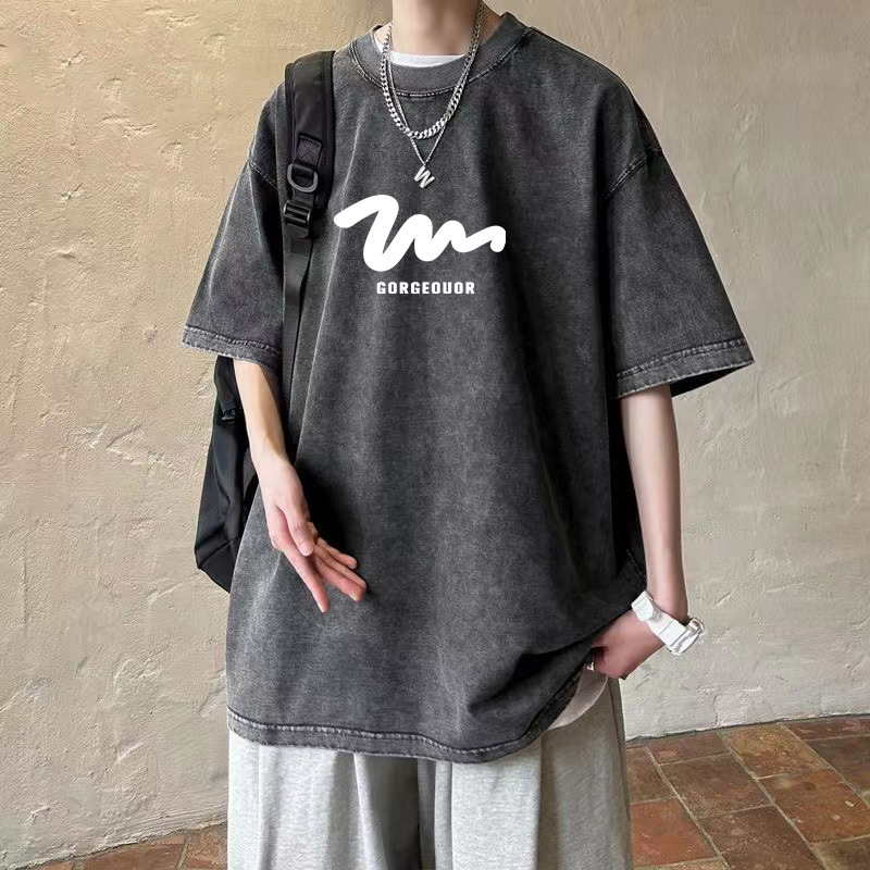 아메리칸 레트로 워싱 디스트레스드 반팔 티셔츠 남성용 루즈 여름 아메리칸 레트로 반팔 티셔츠 트렌드