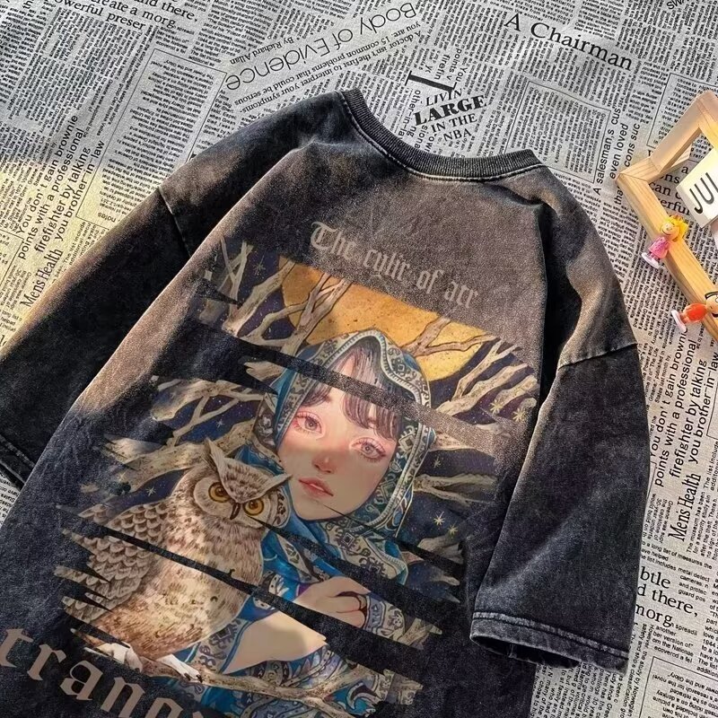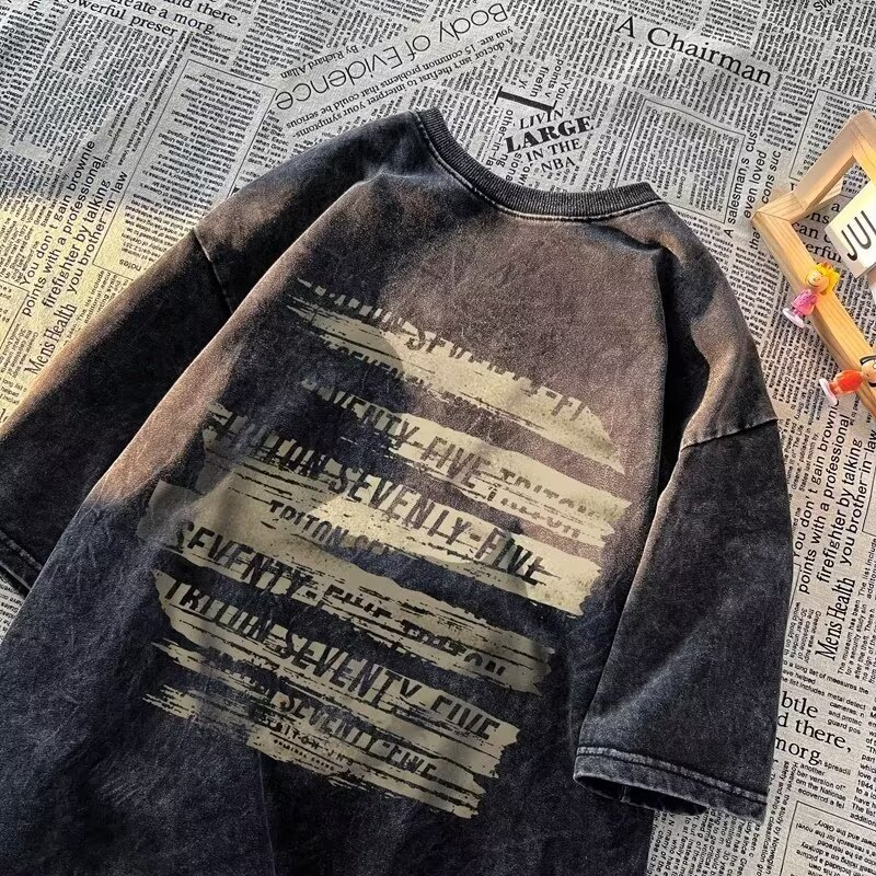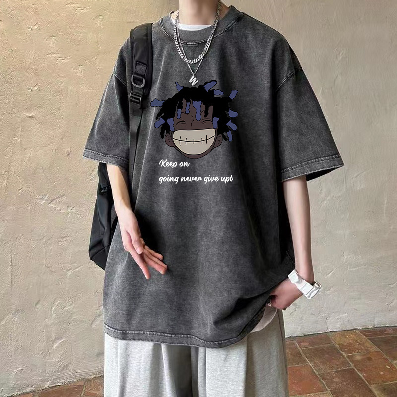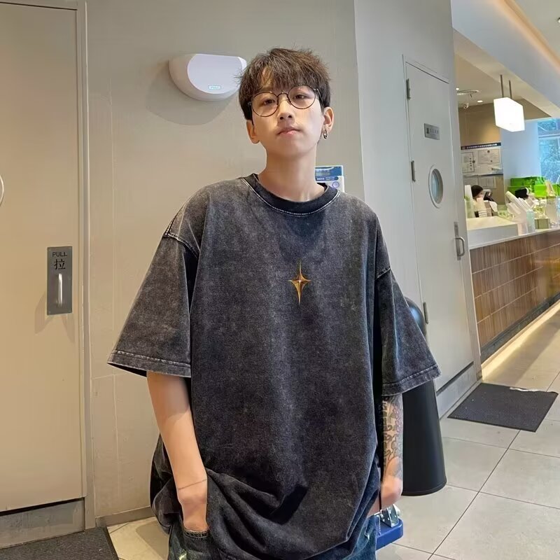 아메리칸 레트로 워싱 디스트레스드 반팔 티셔츠 남성용 루즈 여름 아메리칸 레트로 반팔 티셔츠 트렌드스토어 가기
