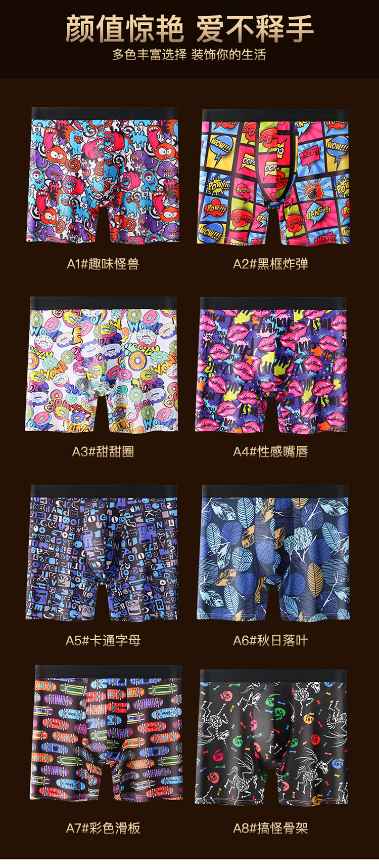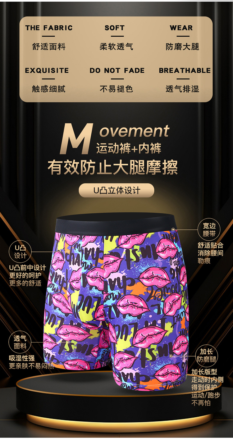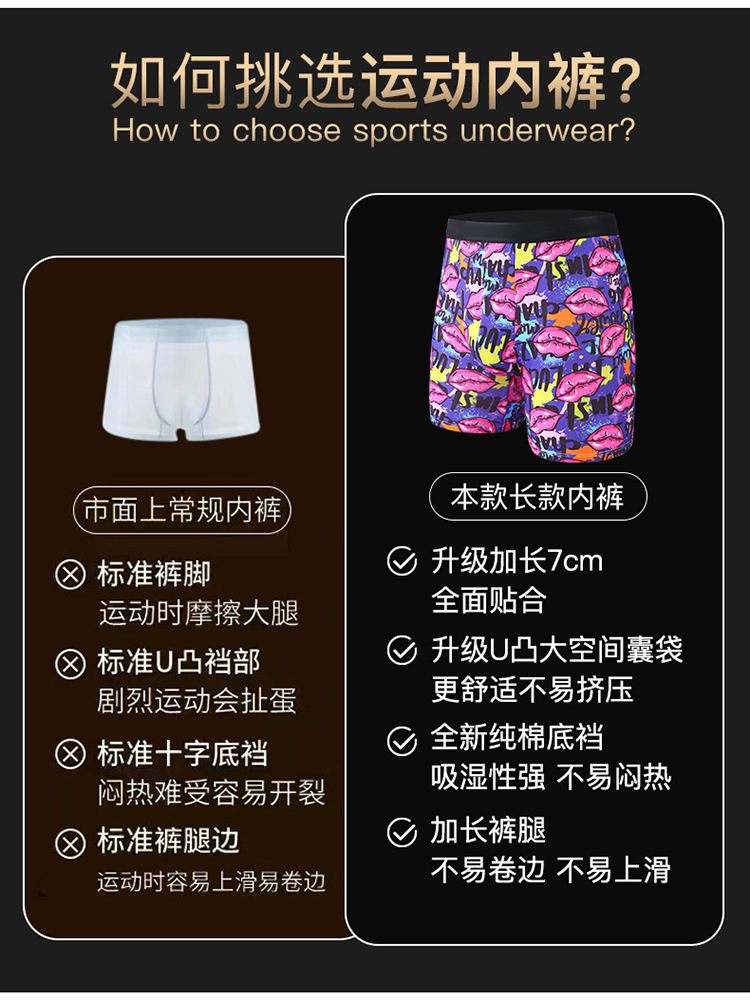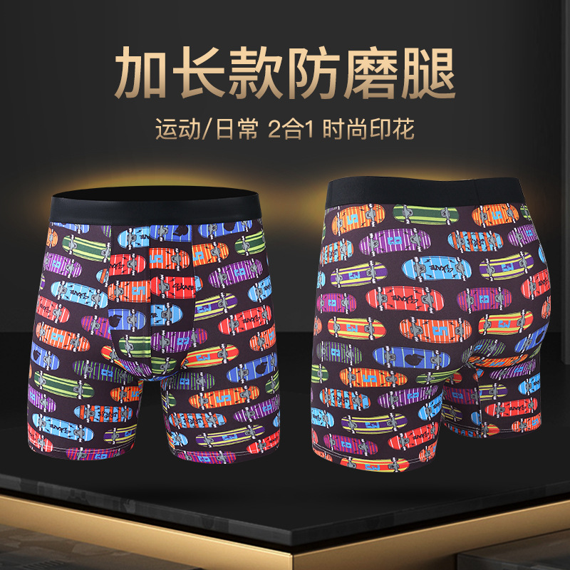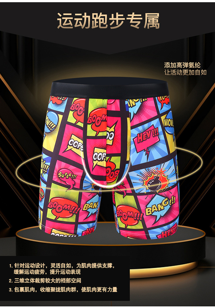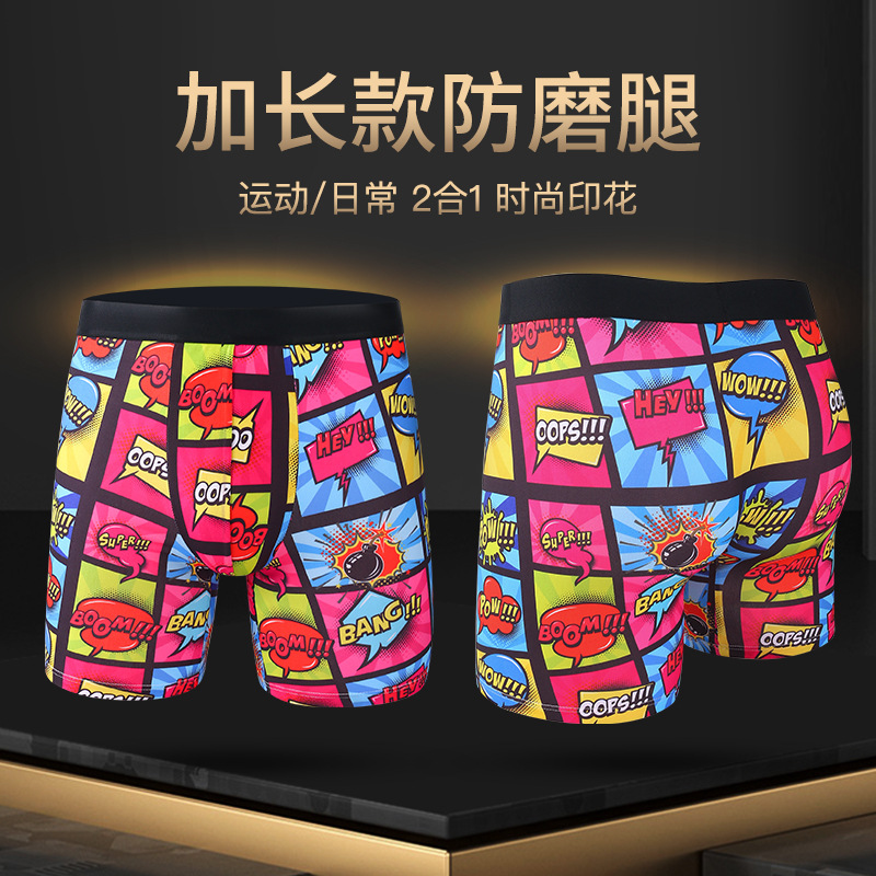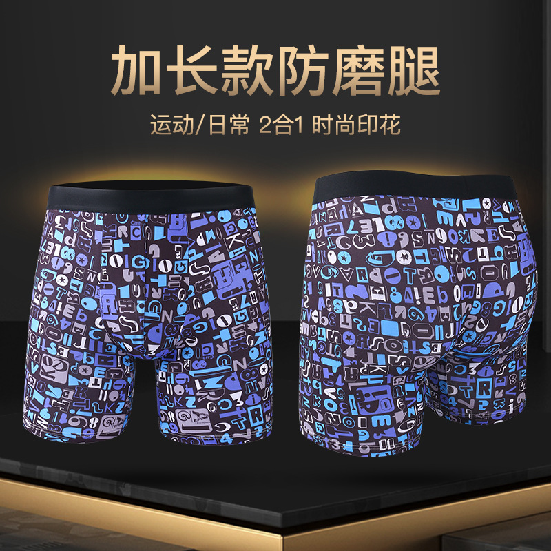 폭발적인 패션 인쇄 확장 된 남성 속옷 복서 스포츠 안티 웨어 다리 확장 긴 다리 복서 속옷 남성 국경스토어 가기