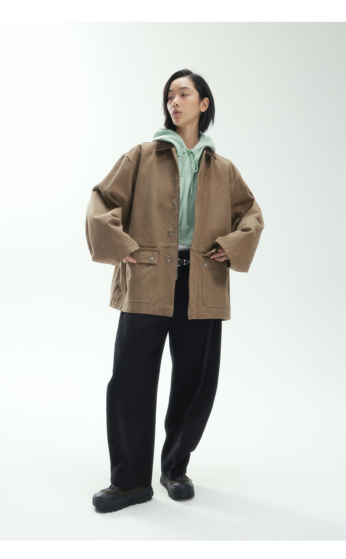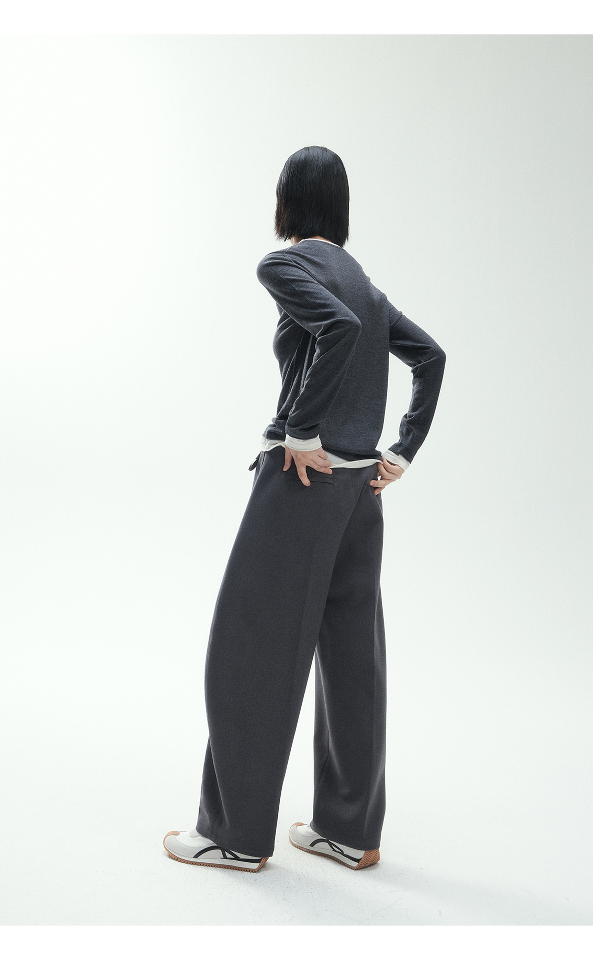 [시간 방문] 새로운 기모 바나나 모양의 9부 바지 스트레이트 파마 페이크 포켓 여성용 미드 로우 웨이스트 캐주얼 바지 V7822
