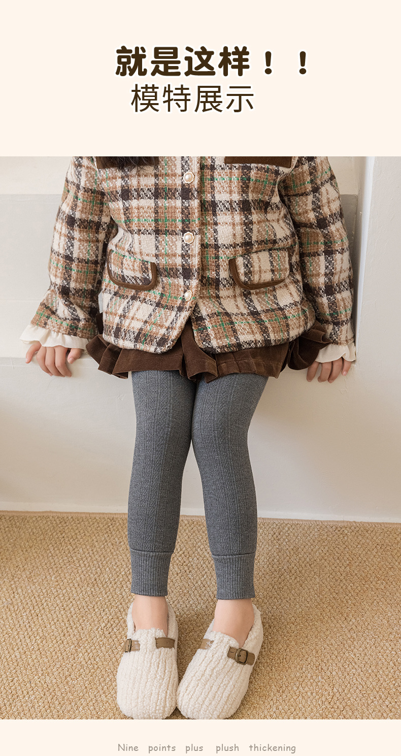 소녀 레깅스 가을과 겨울 기모 두꺼운 단색 트위스트 어린이 자른 바지 아기 따뜻한베이스 바지스토어 가기