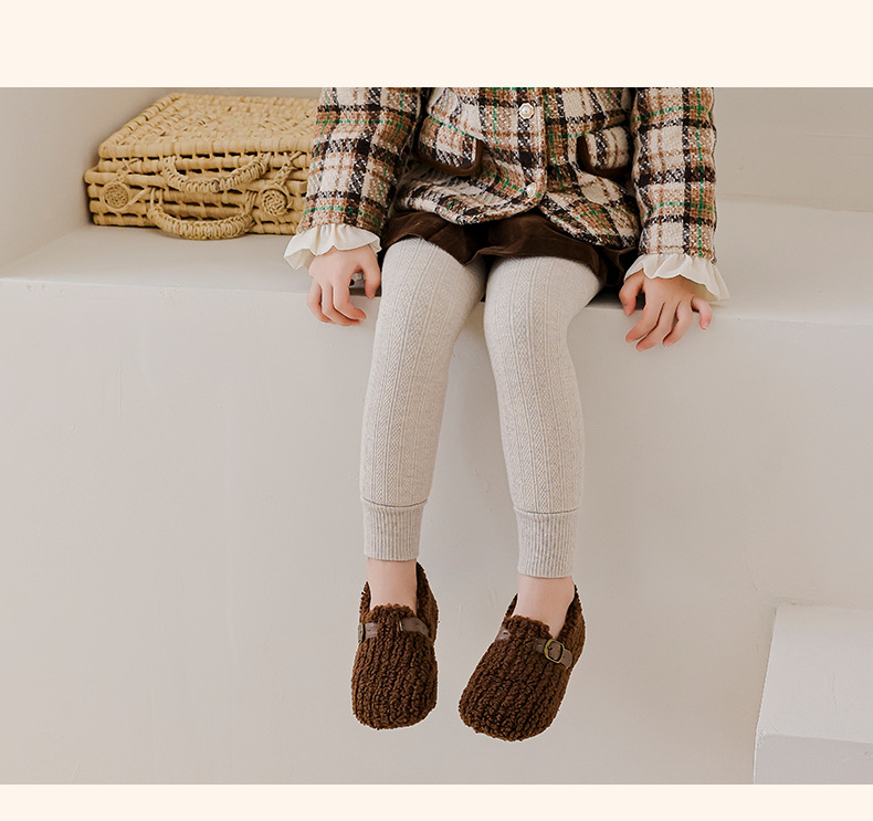 소녀 레깅스 가을과 겨울 기모 두꺼운 단색 트위스트 어린이 자른 바지 아기 따뜻한베이스 바지