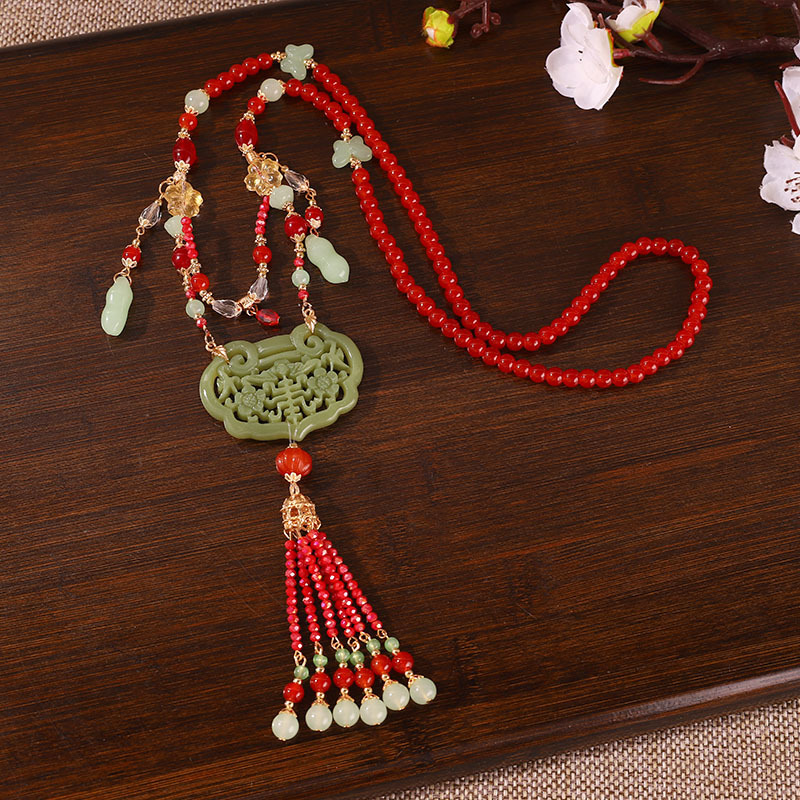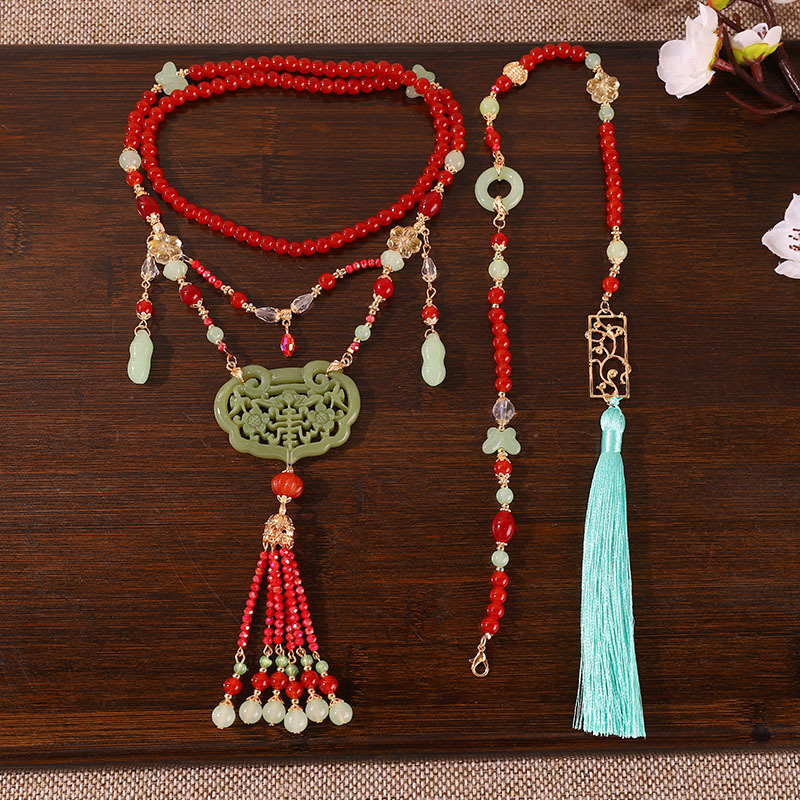 공장 도매 화환 모든 긴 술 복고풍 Ming Tang 스타일 목걸이 한푸 골동품 모조 옥 펜던트 목걸이스토어 가기