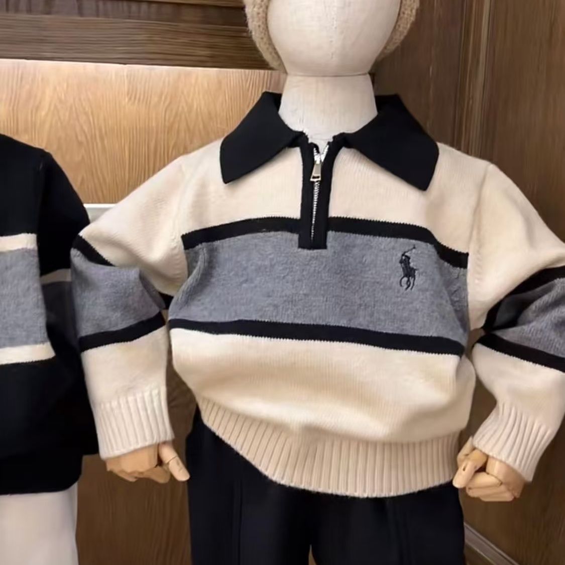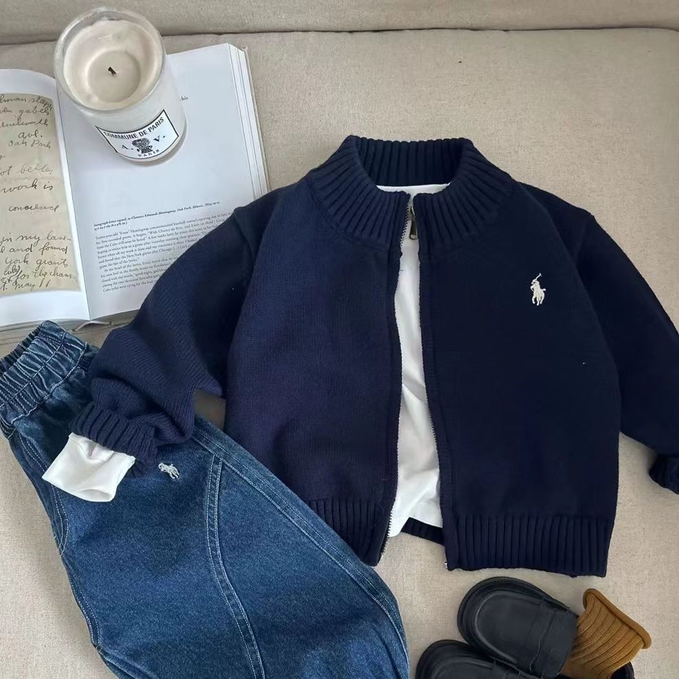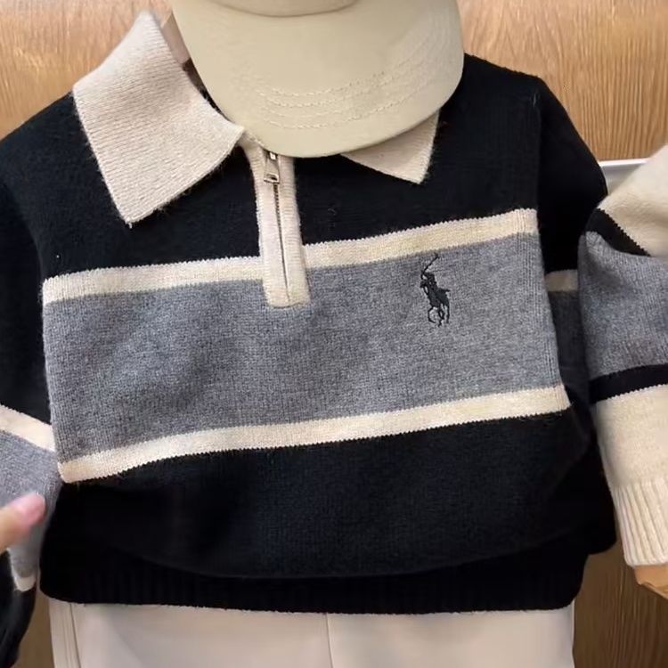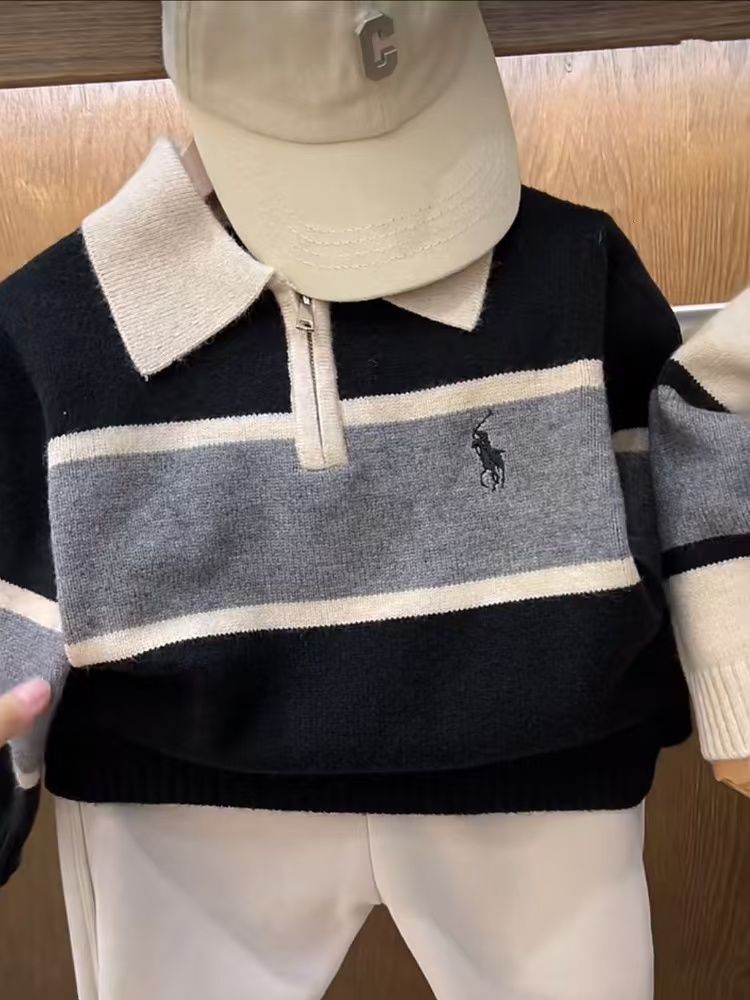 한국 아동용 옷깃 스웨터 가을과 겨울 대학 스타일 아기 세련된 컬러 블록 풀오버 스웨터스토어 가기