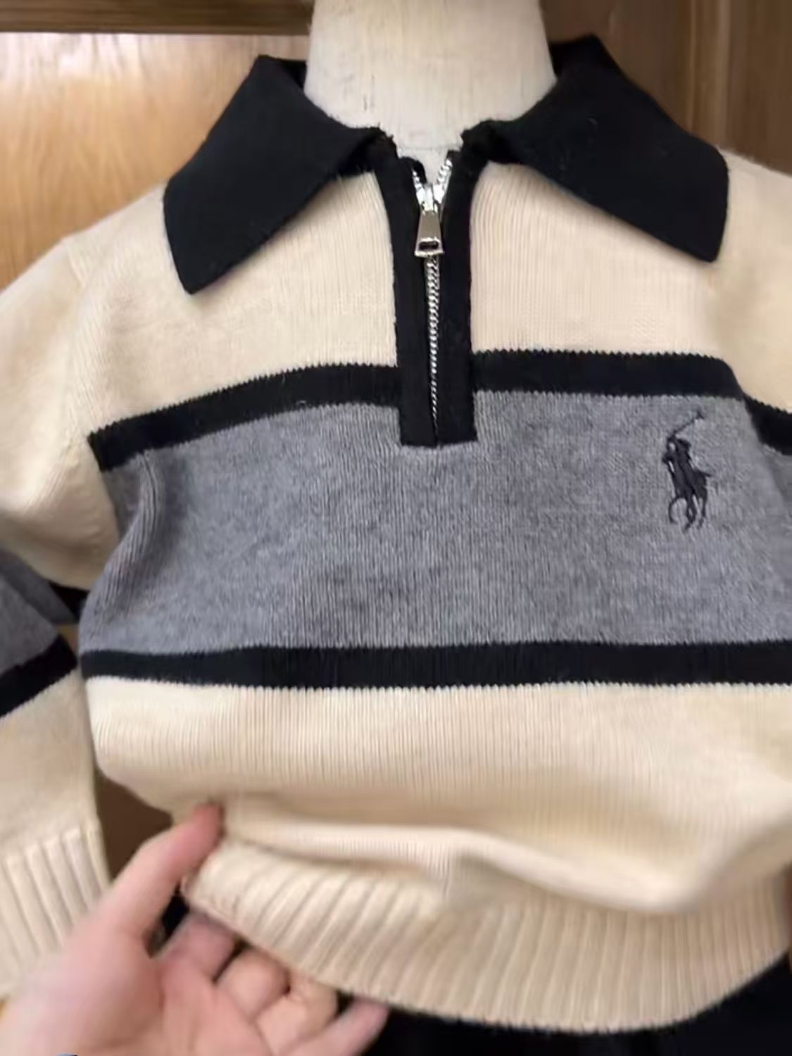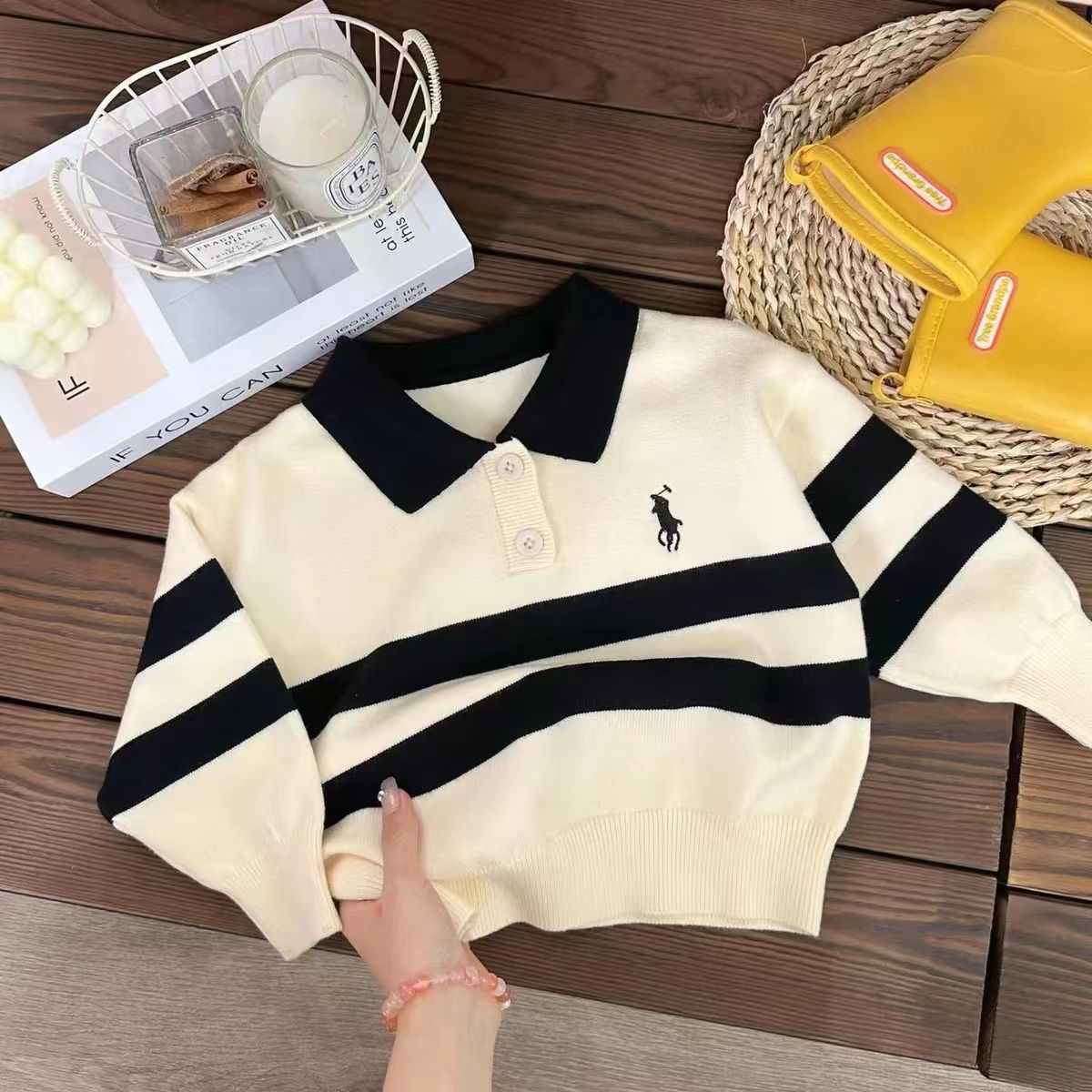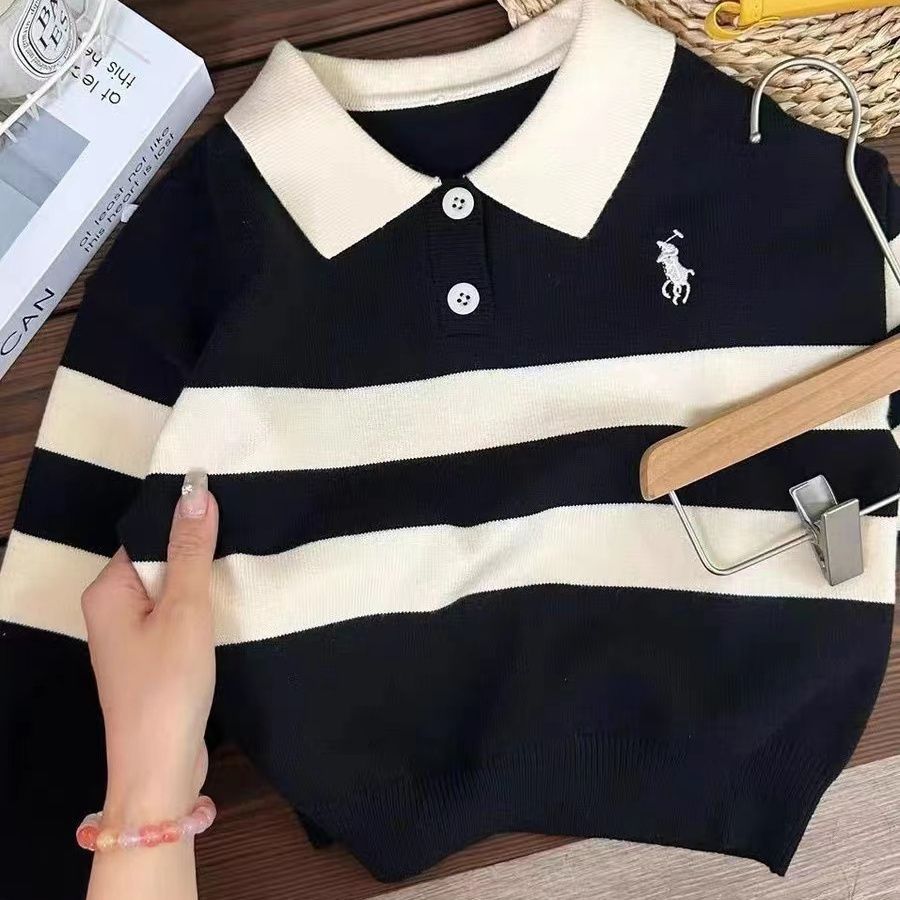 한국 아동용 옷깃 스웨터 가을과 겨울 대학 스타일 아기 세련된 컬러 블록 풀오버 스웨터스토어 가기