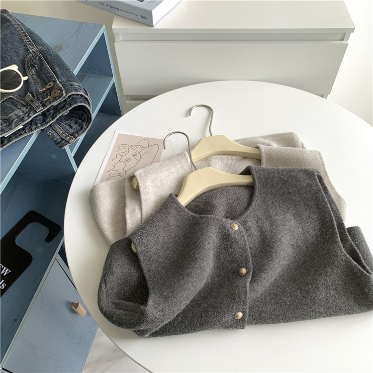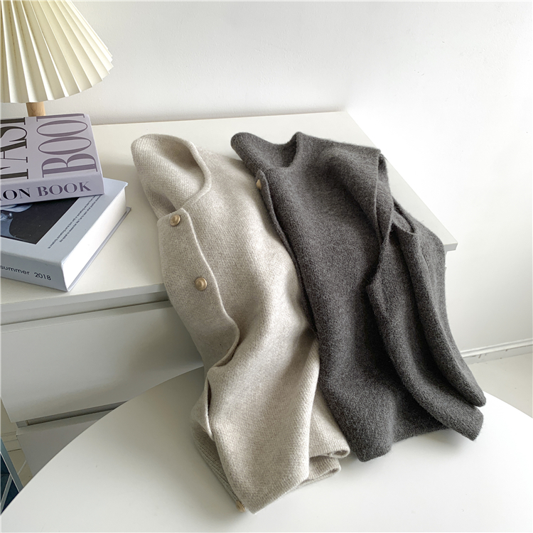 부드러운 싱글 브레스트 스몰 골드 버튼 라운드 넥 슬림 스웨터 조끼 여성 한국 루즈 웨이스트 코트 여성