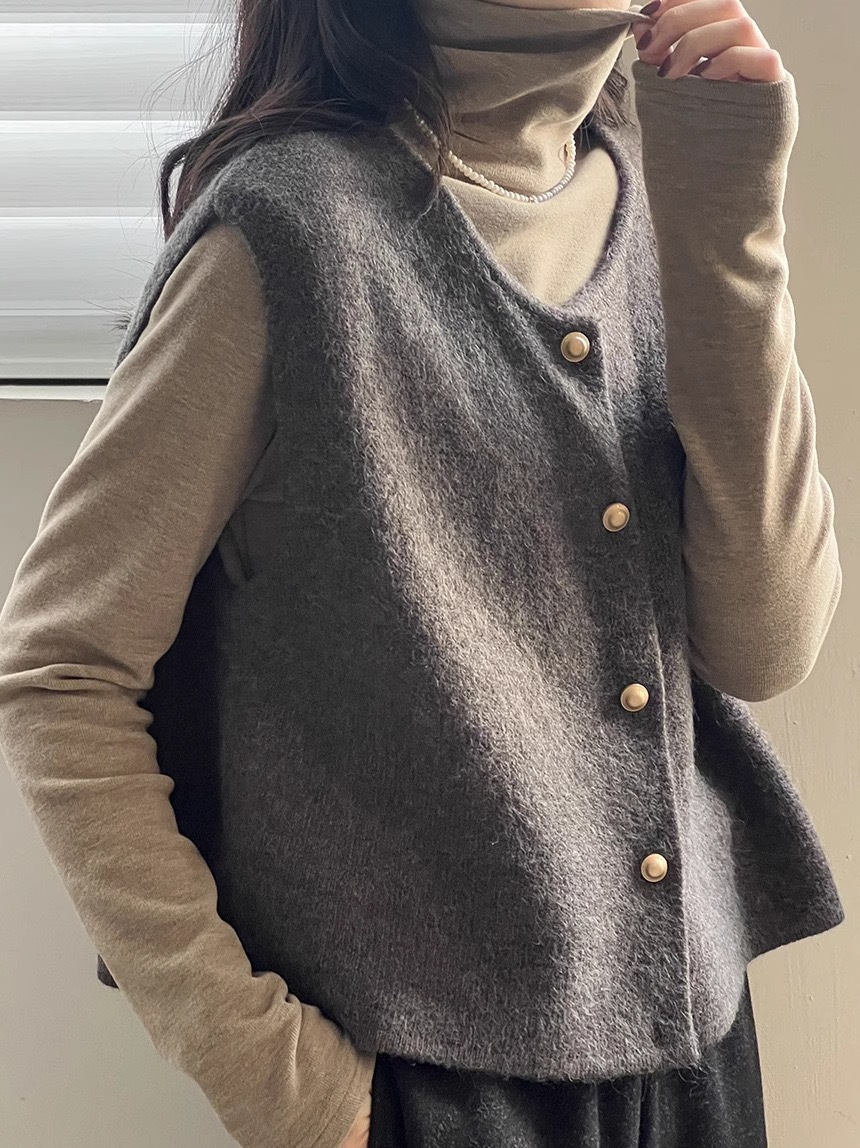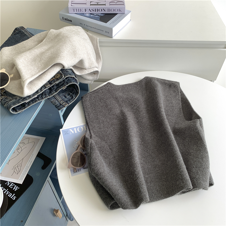 부드러운 싱글 브레스트 스몰 골드 버튼 라운드 넥 슬림 스웨터 조끼 여성 한국 루즈 웨이스트 코트 여성스토어 가기