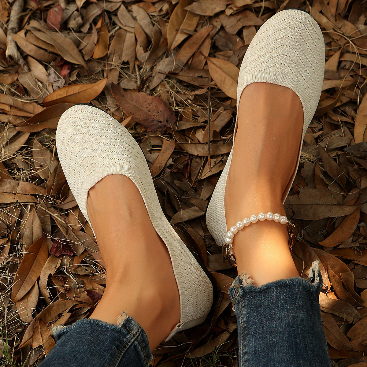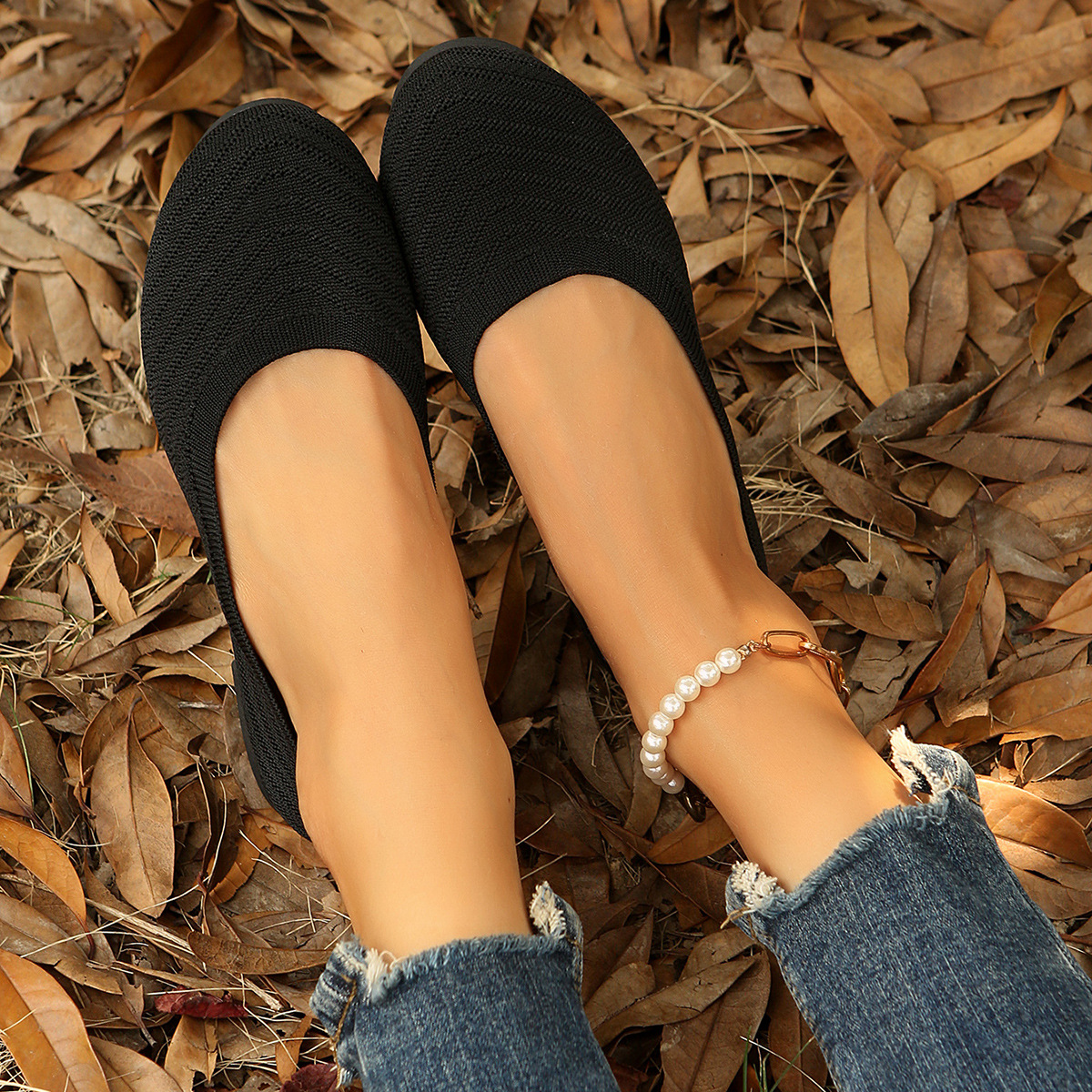 2024 봄과 가을 새로운 얕은 입 편평한 발 뒤꿈치 니트 신발 여성 국경 간 대외 무역 플러스 사이즈 패션 캐주얼 여성 신발스토어 가기