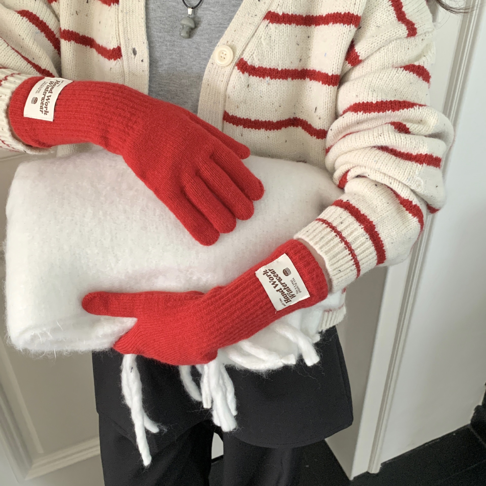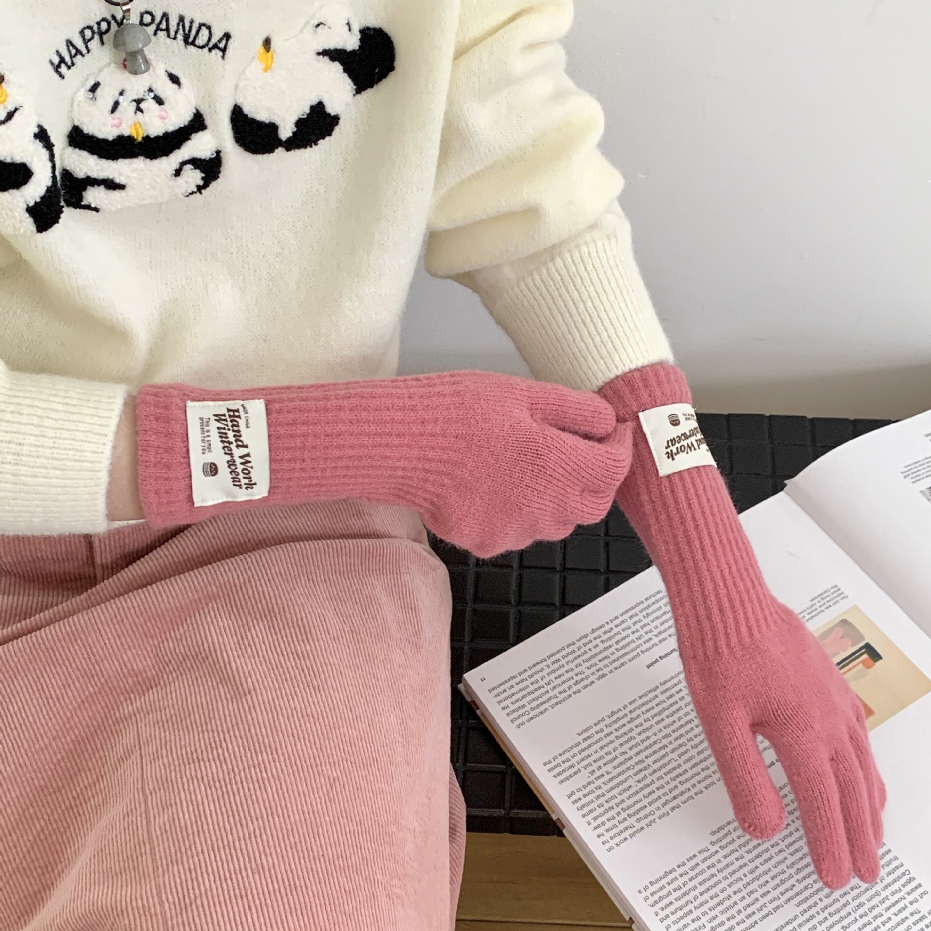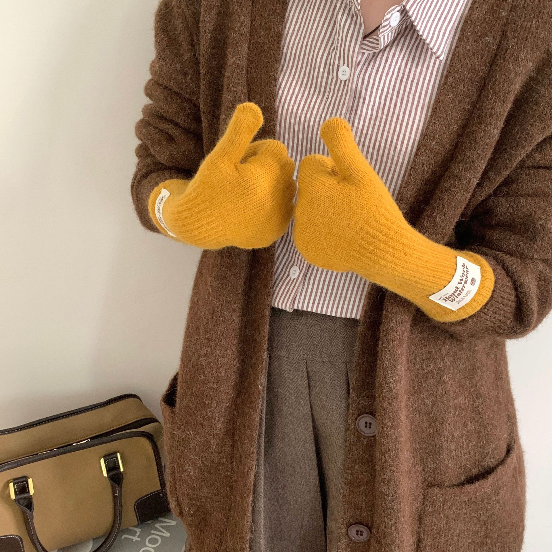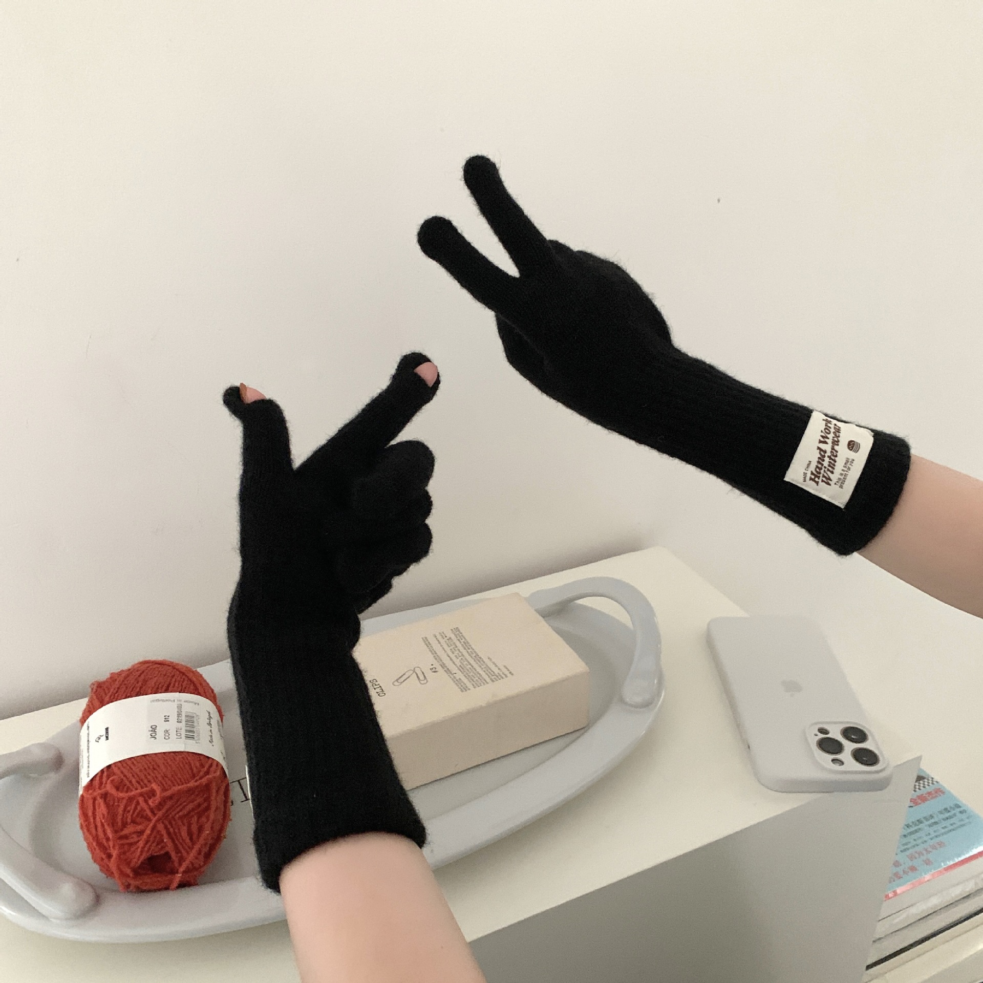 여성용 겨울 따뜻한 장갑, 다섯 손가락 터치스크린, 오픈 핑거, 단색 니트, 긴 스타일, 방풍, 사이클링, 한국 버전, 다용도스토어 가기