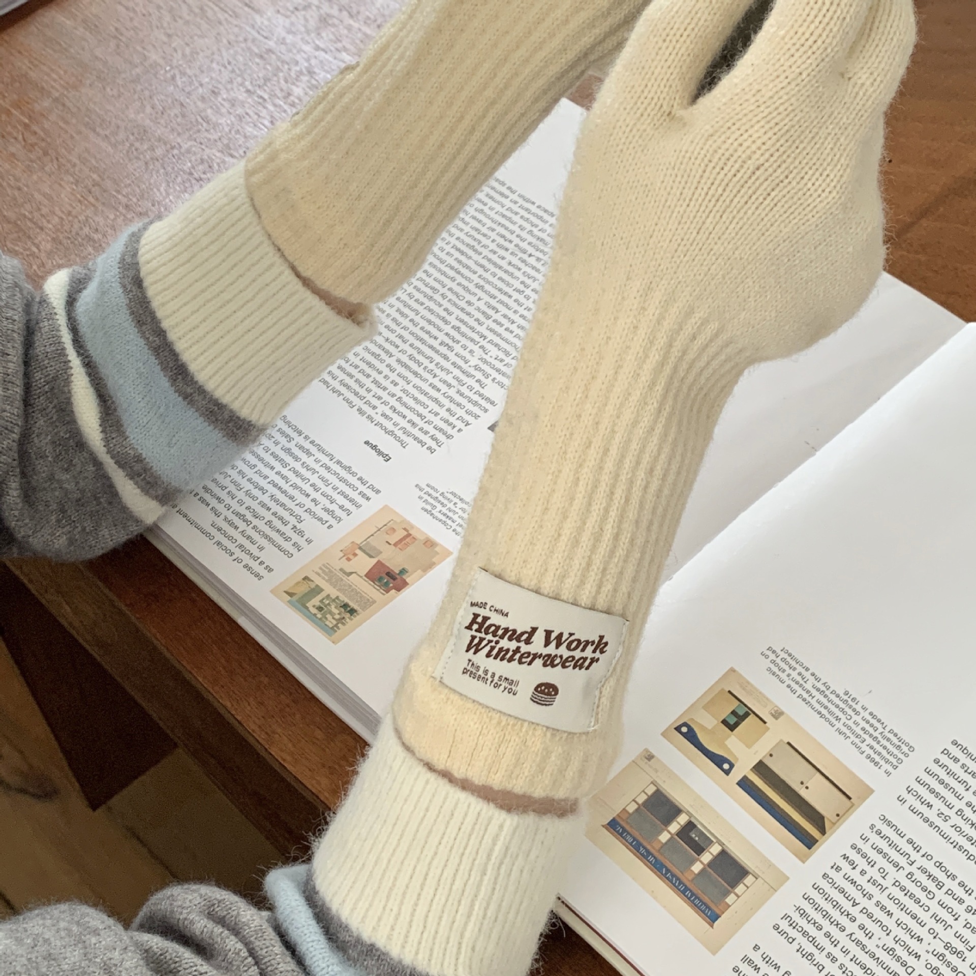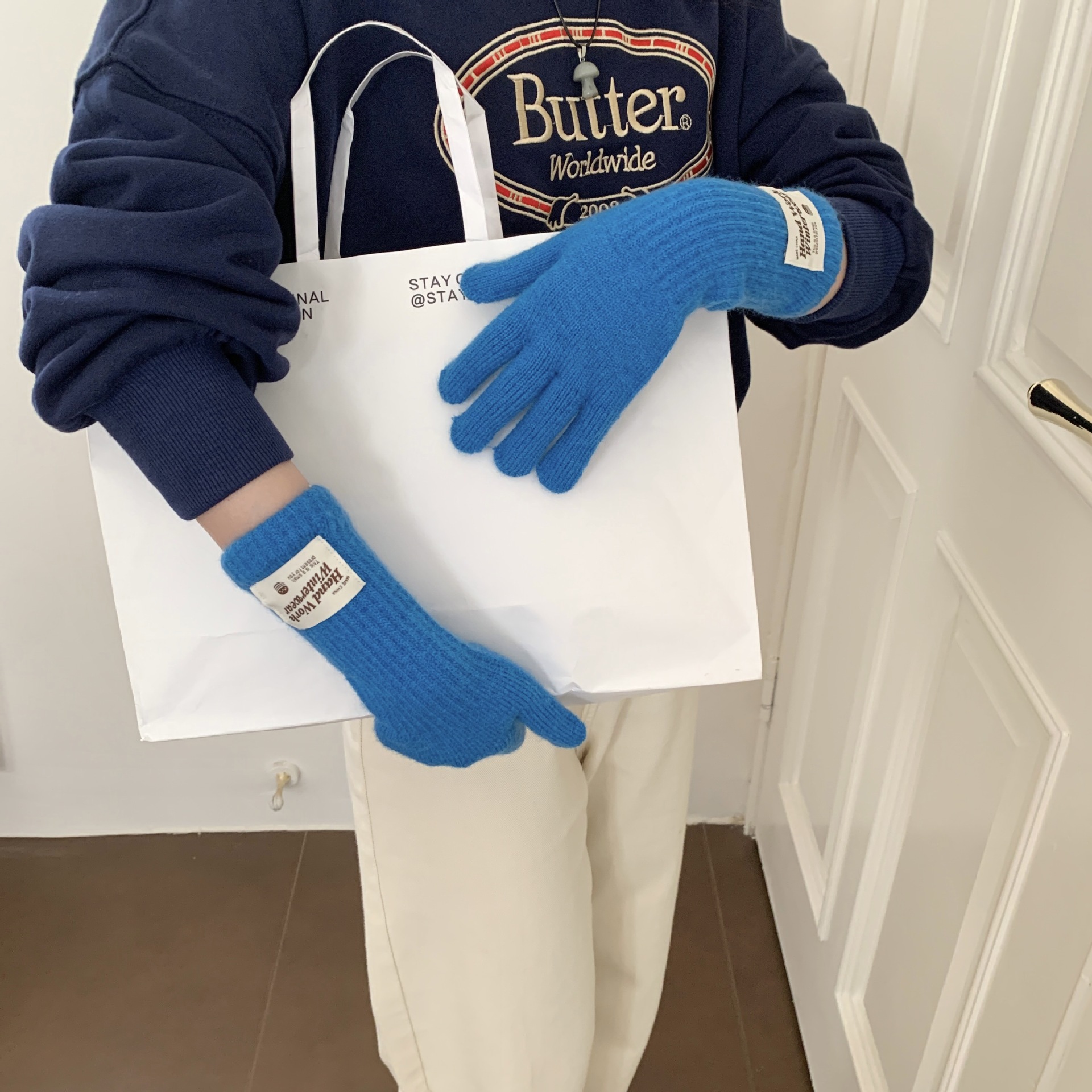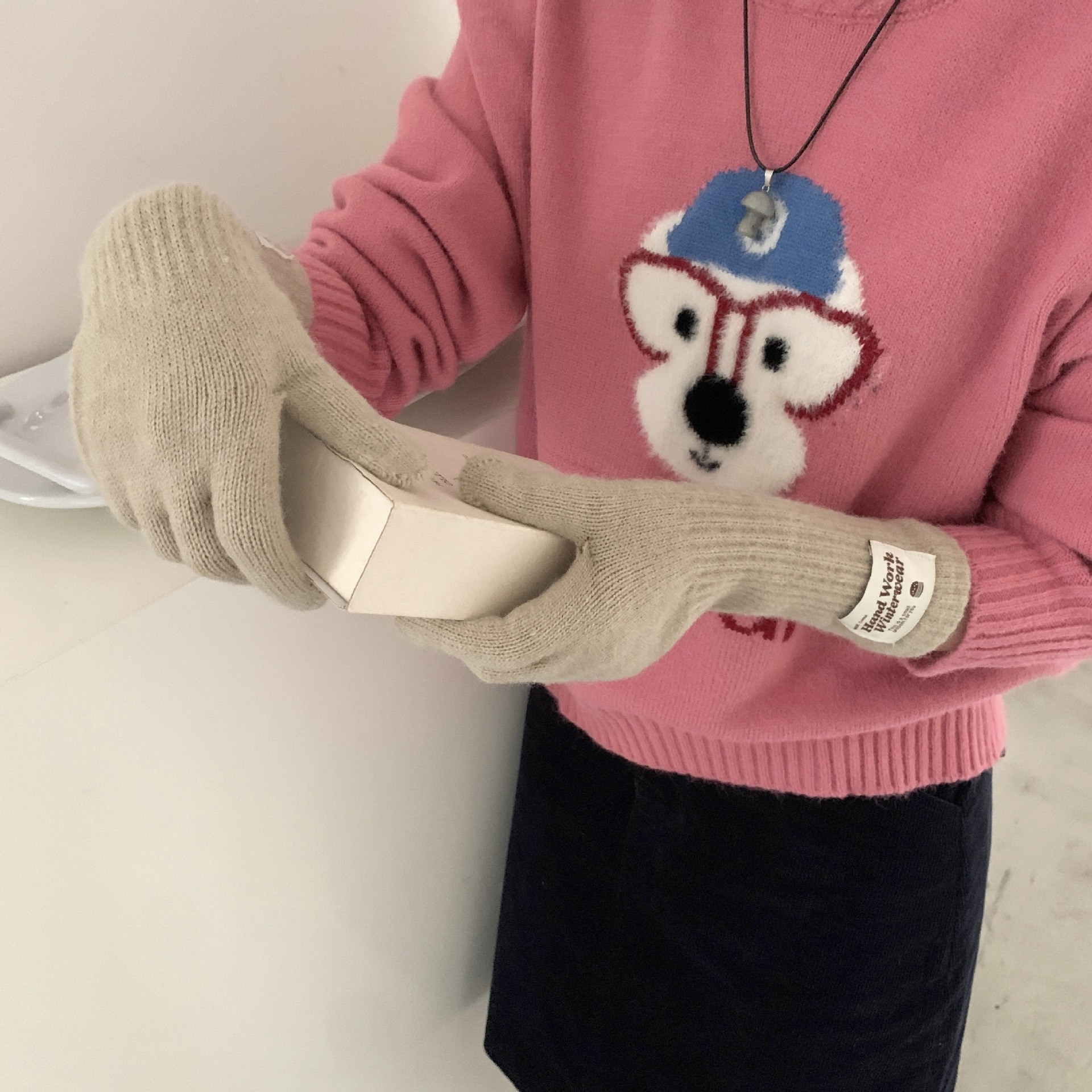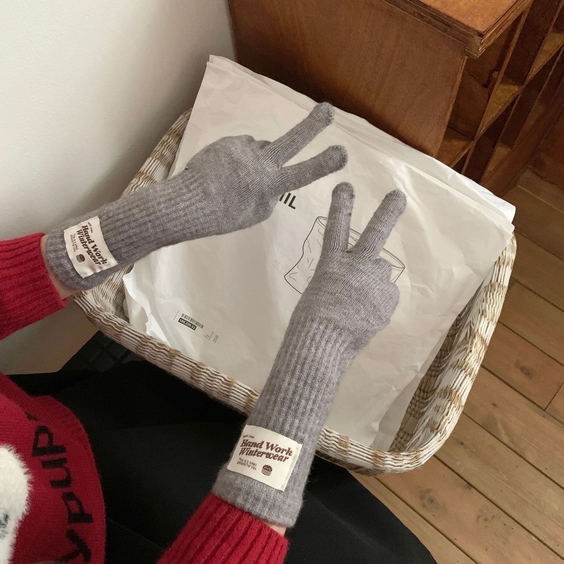 여성용 겨울 따뜻한 장갑, 다섯 손가락 터치스크린, 오픈 핑거, 단색 니트, 긴 스타일, 방풍, 사이클링, 한국 버전, 다용도스토어 가기