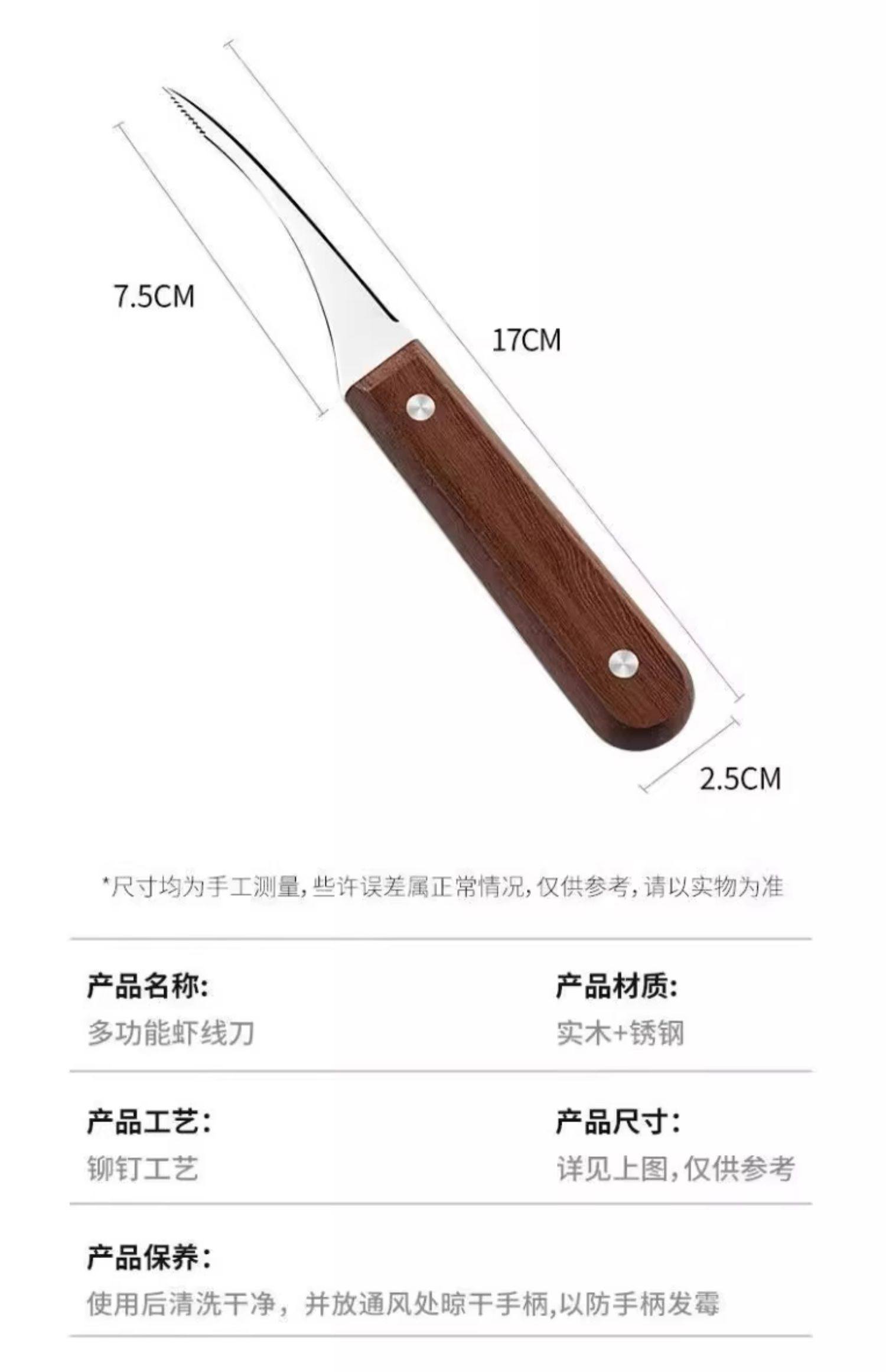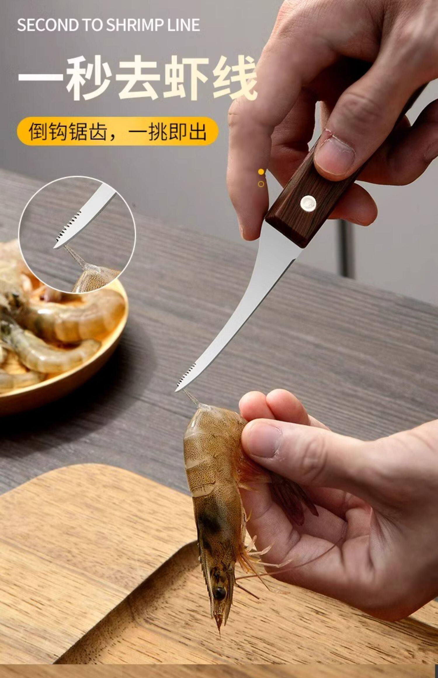 새우 라인 제거 칼 새우줄 제거 유물 솔리드 우드 스테인레스 스틸 주방 다기능 새우 쉘 피킹 생선 소시지 새우 백 칼스토어 가기