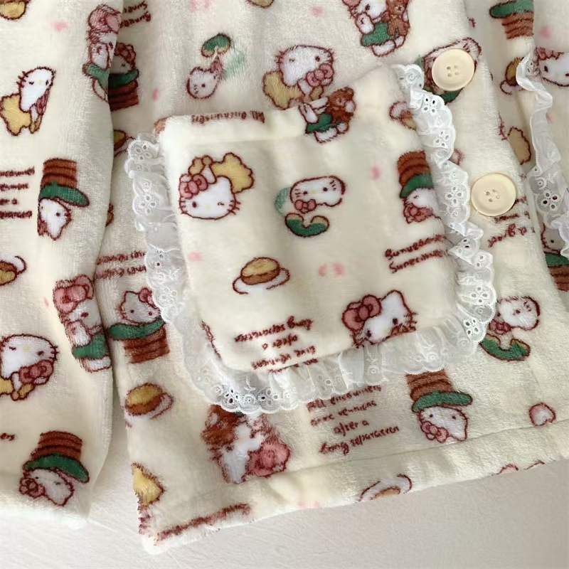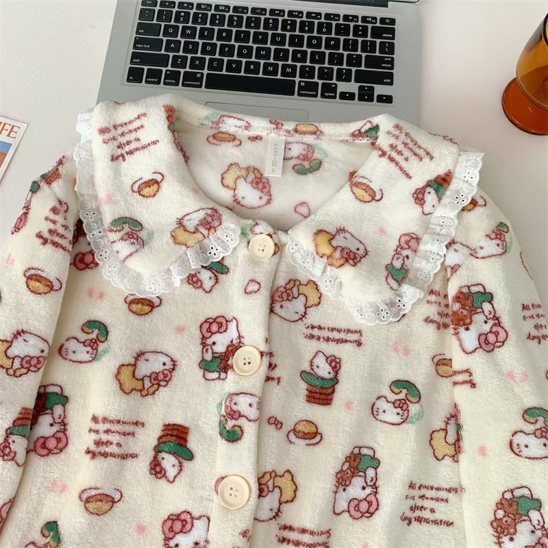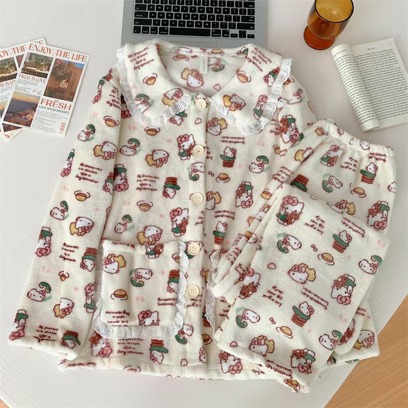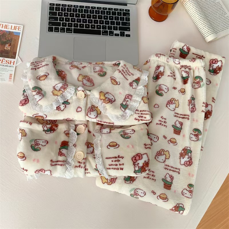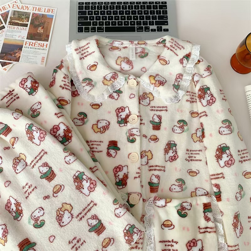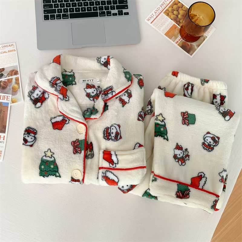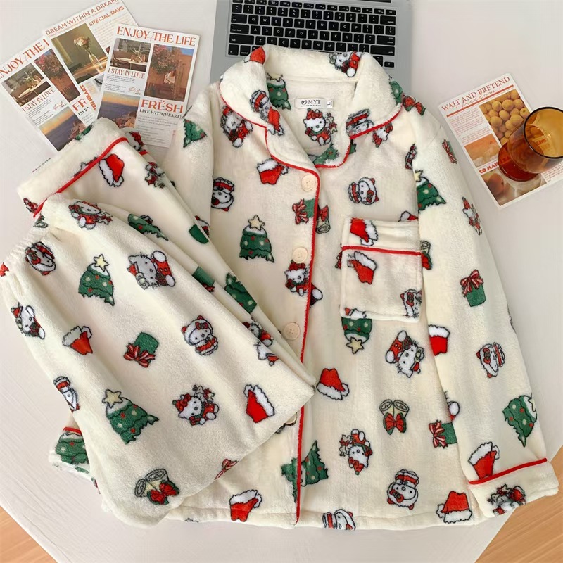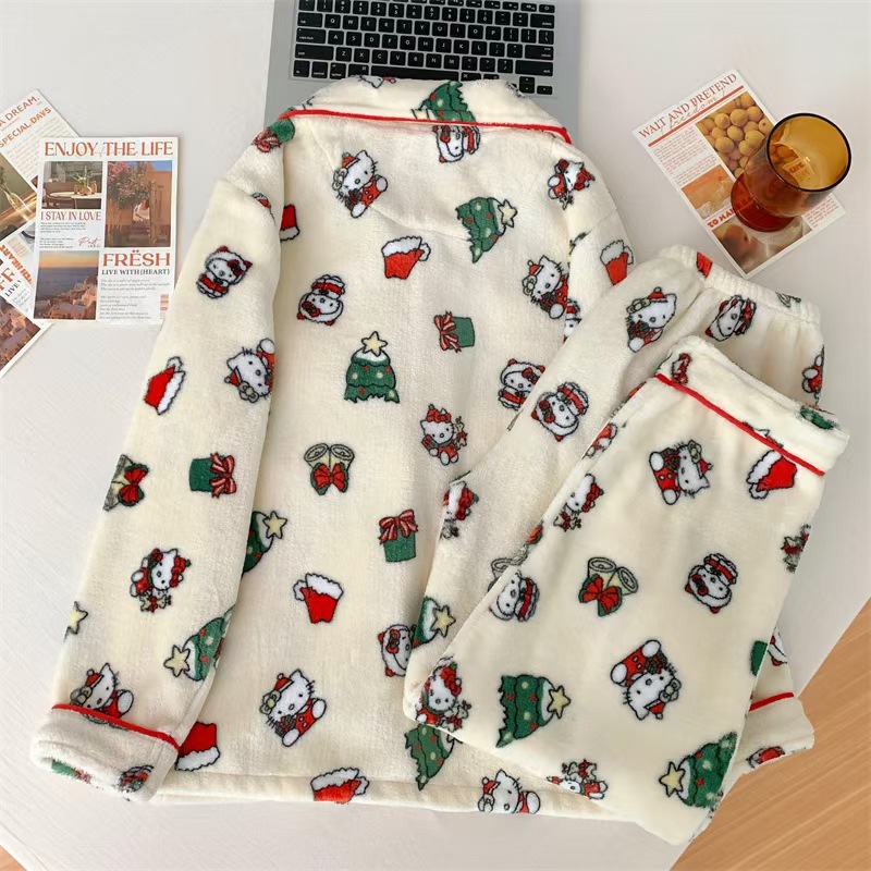 귀여운 만화 크리스마스 KT 고양이 파자마 여성의 2024 봄 가을 겨울 Ins 스타일 긴 소매 바지 소녀는 외부 가정을 입을 수 있습니다스토어 가기