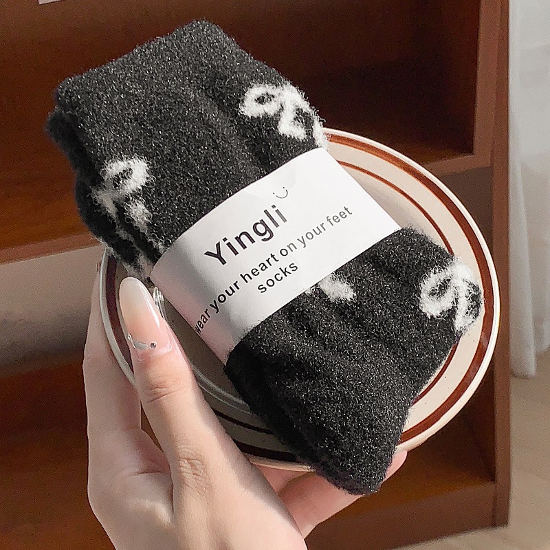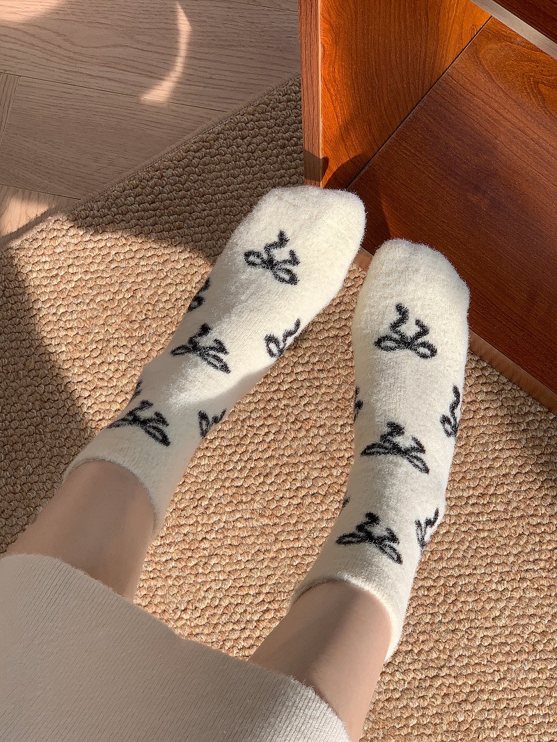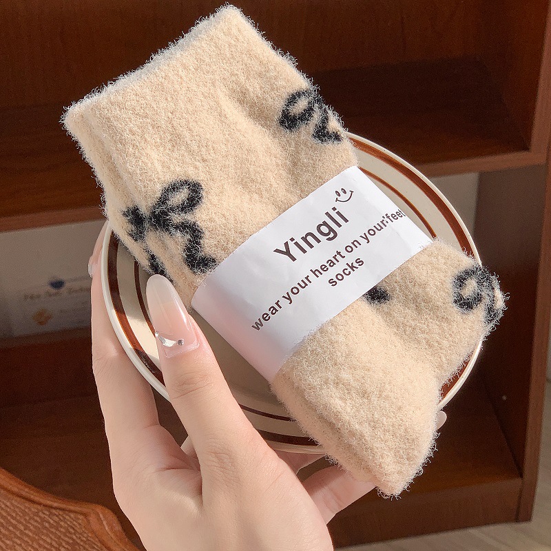 Bowknot 호주 벨벳 양말 어린이 가을과 겨울 기모 두꺼운 따뜻한 양말에 일본 바닥 양말 봉제 벨벳 양말스토어 가기