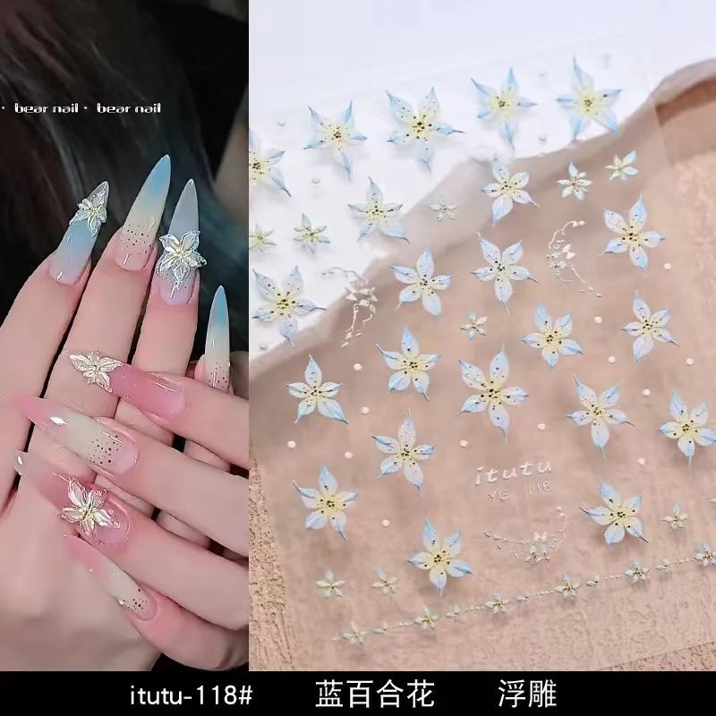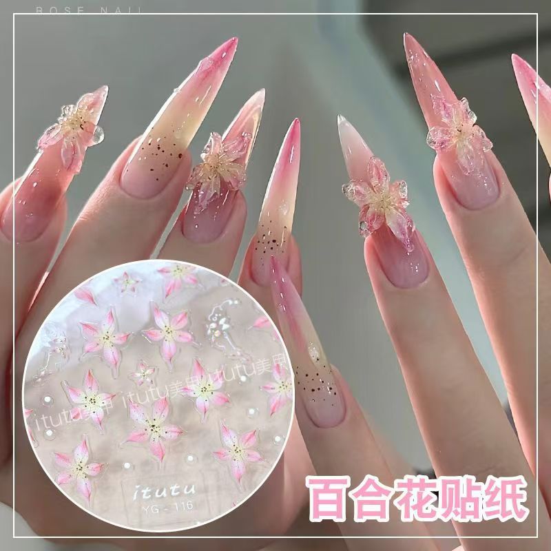 작은 빨간 책 봄 야생 꽃 구호 쉘 빛 네일 아트 스티커 유화 작은 야생 꽃 간단한 신선한 네일 스티커스토어 가기